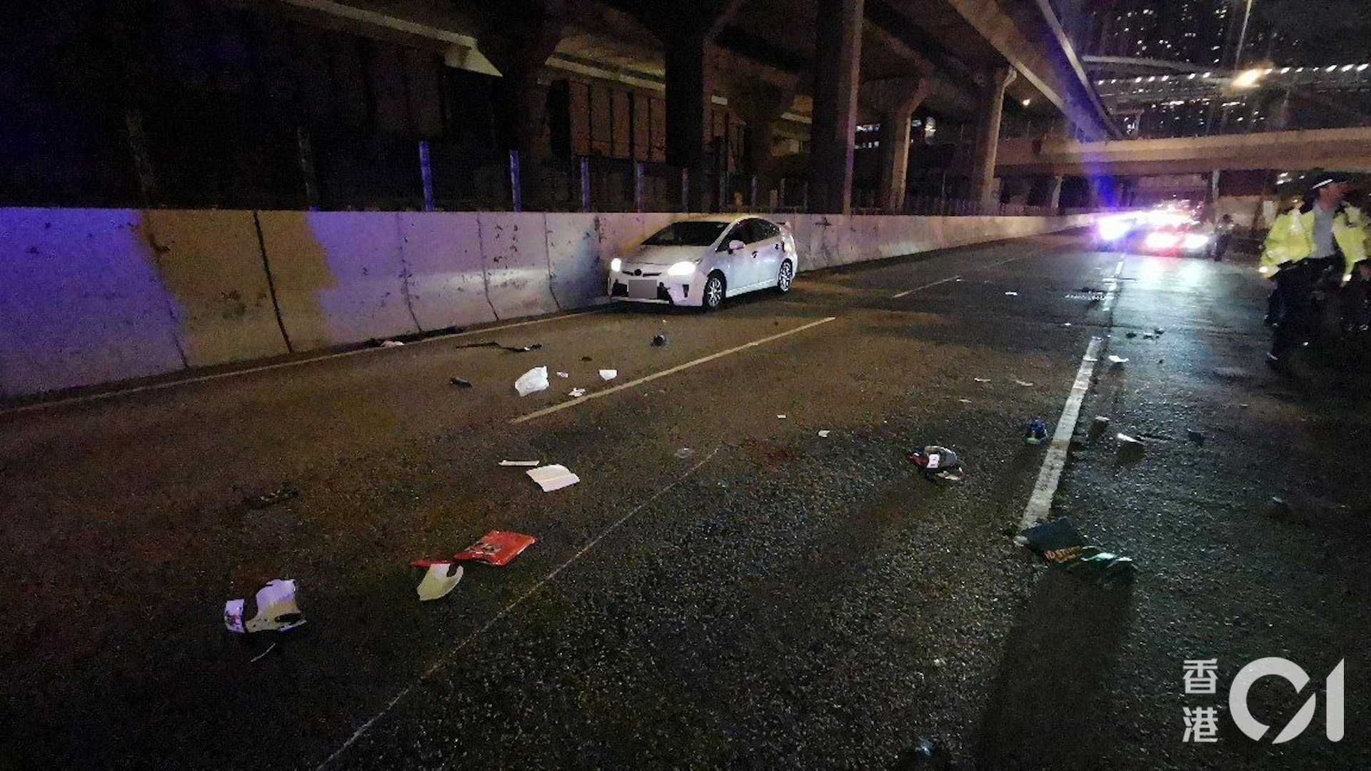 目擊者譚先生指,電單車切線時,與一輛的士車身相撞,電單車與鐵騎士瞬間人車分離,鐵騎士則被拋出車外,倒卧左二線地上,電單車則飛彈橫跨兩條行車線,翻倒在左三線,電單車車身被一輛白色私家車撞及。7 X6 n# N I8 ~4 k% m8 U( O/ y/ h