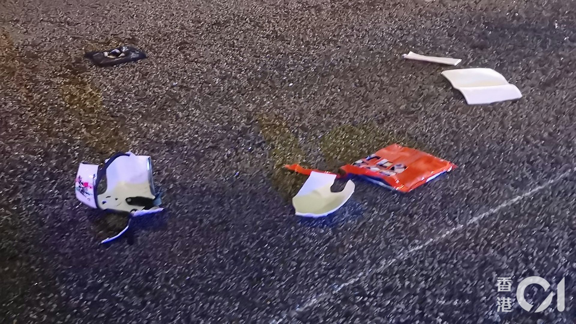( v( D# L: h9 ^現場遺下血跡,頭盔碎片。(林振華攝)2 g8 }+ C% p- ]