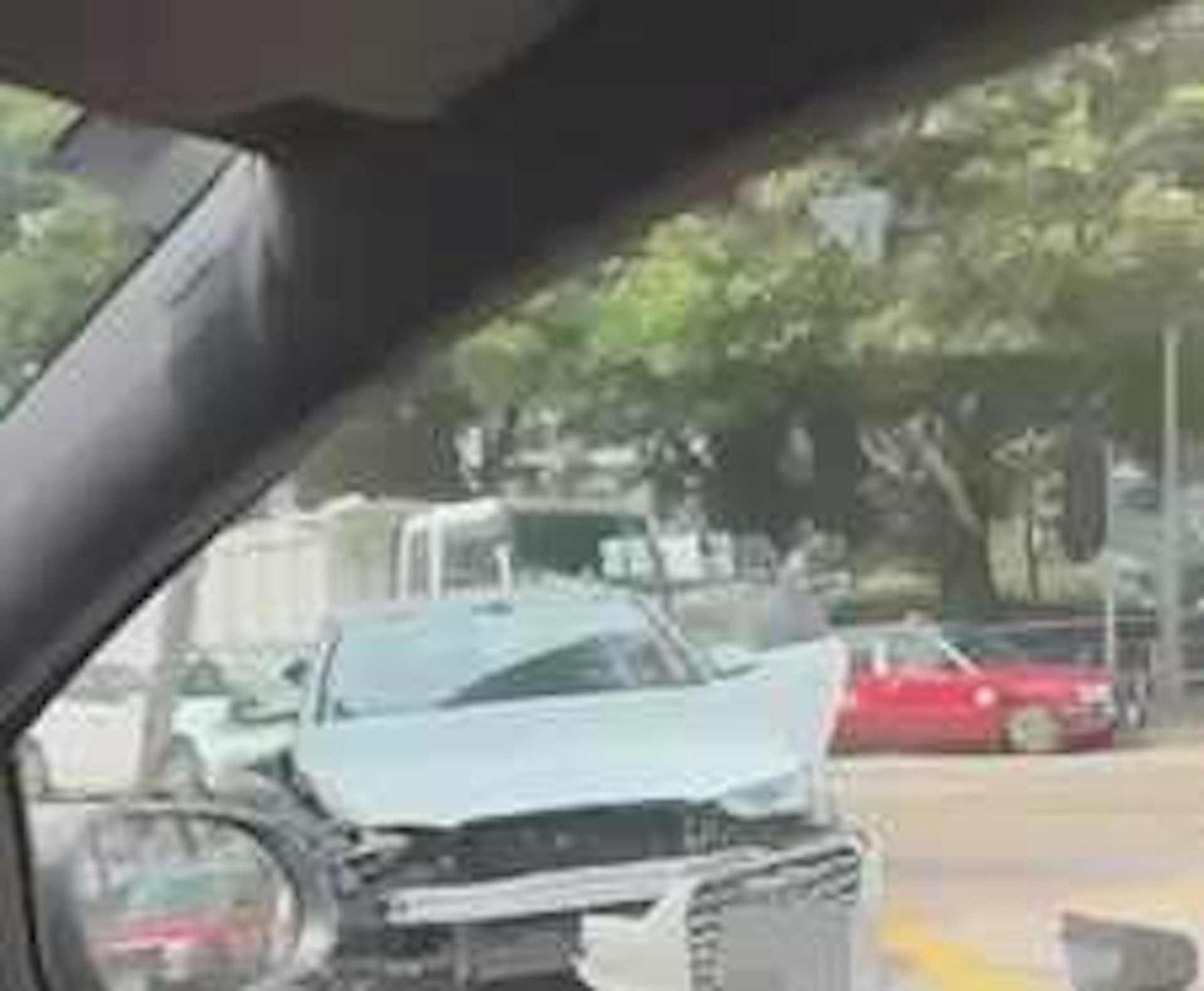 牛池灣清水灣道今午(23日)發生車禍,一輛Audi私家車懷疑失控「自炒」,撞毀兩支交通燈及一個交通標誌牌,有人事後棄車逃去。車禍現場片段曝光,據讀者提供予《香港01》的片段可見,事發後私家車車門被打開,一男一女站在車旁,男子身穿白色T恤及深色長褲、左手拿着一個手提袋,先行徒步往彩雲邨方向施施然離去;女子則彎腰疑似在車內執拾東西,之後亦將一個袋孭到肩上並關車門。片段亦可見,肇事私家車右邊車頭嚴重損毀,泵把甩脫;被撞的交通燈柱彎曲變形,燈號跌落地面。