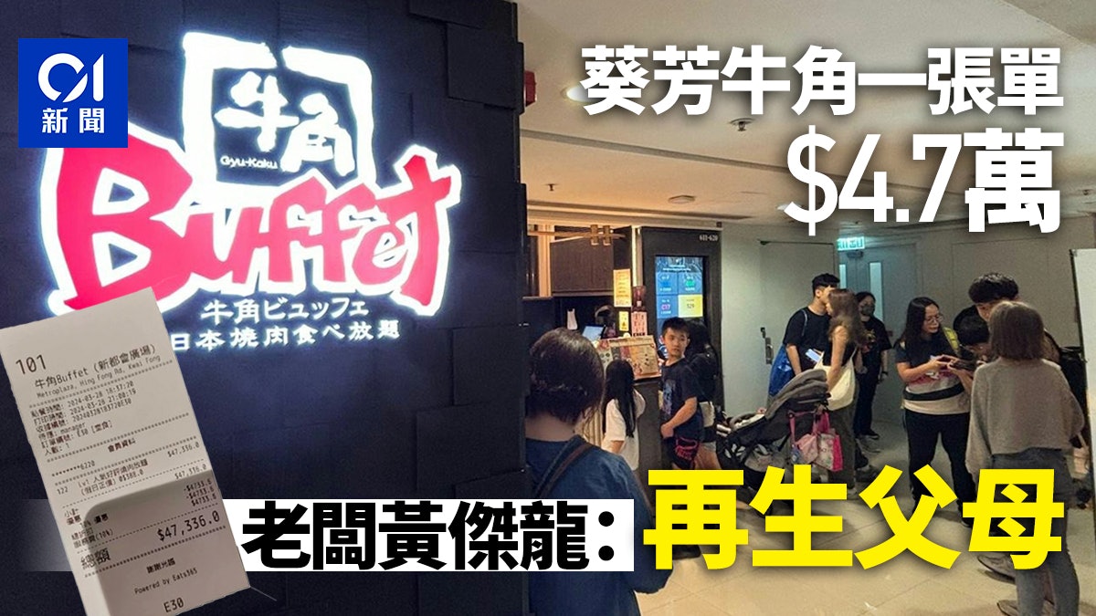 * U, g* a% D6 t8 Y7 m& B公仔箱論壇經濟不景及北上潮,重創本港零售及飲食業。敍福樓集團主席黃傑龍昨晚(28日)在社交謀體上載旗下日式燒肉店、葵芳牛角Buffet一張「大單」,總額4.7萬元,「唔知幾耐冇見過一張牛角嘅收據$47336」,「今時今日簡直係再生父母感激非常」。