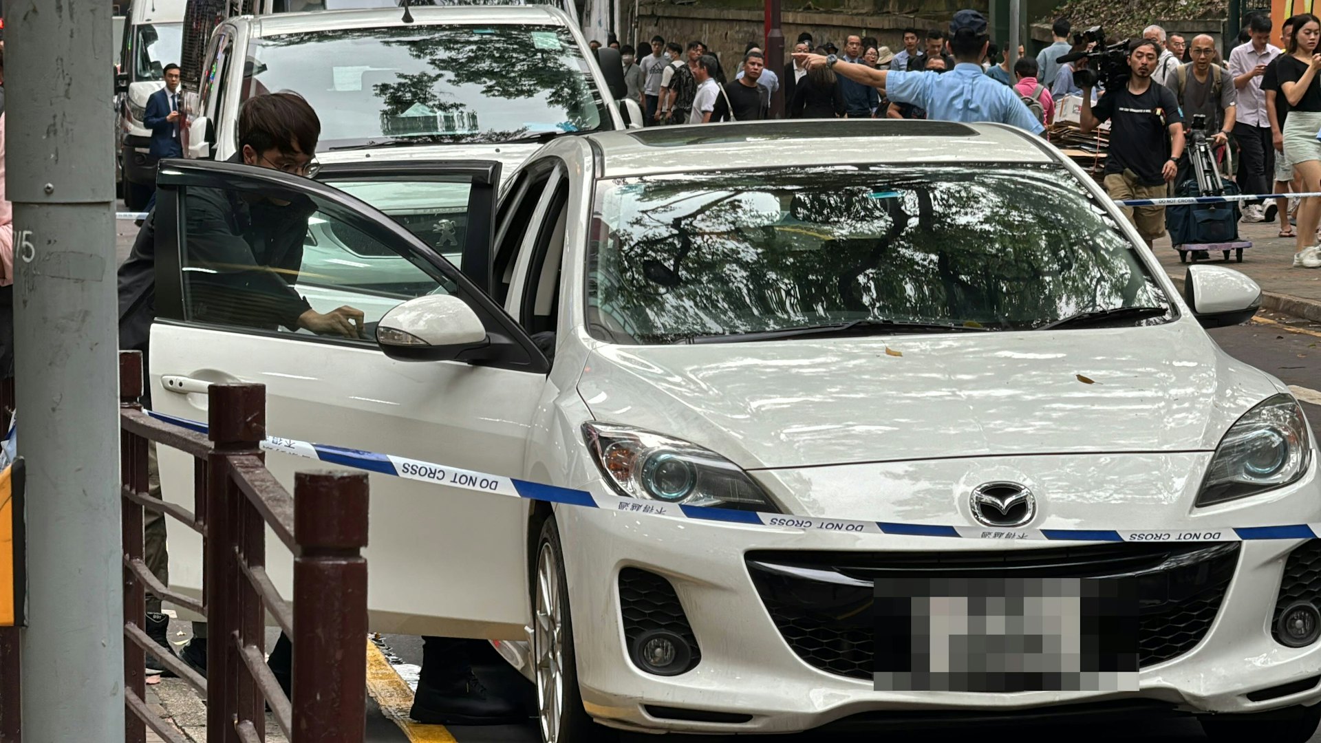 " e! a0 D0 Z8 }8 d6 }3 \; X, C: L警方封鎖海防道與漢口道交界,並查封門外一部白色私家車。(翁鈺輝攝)