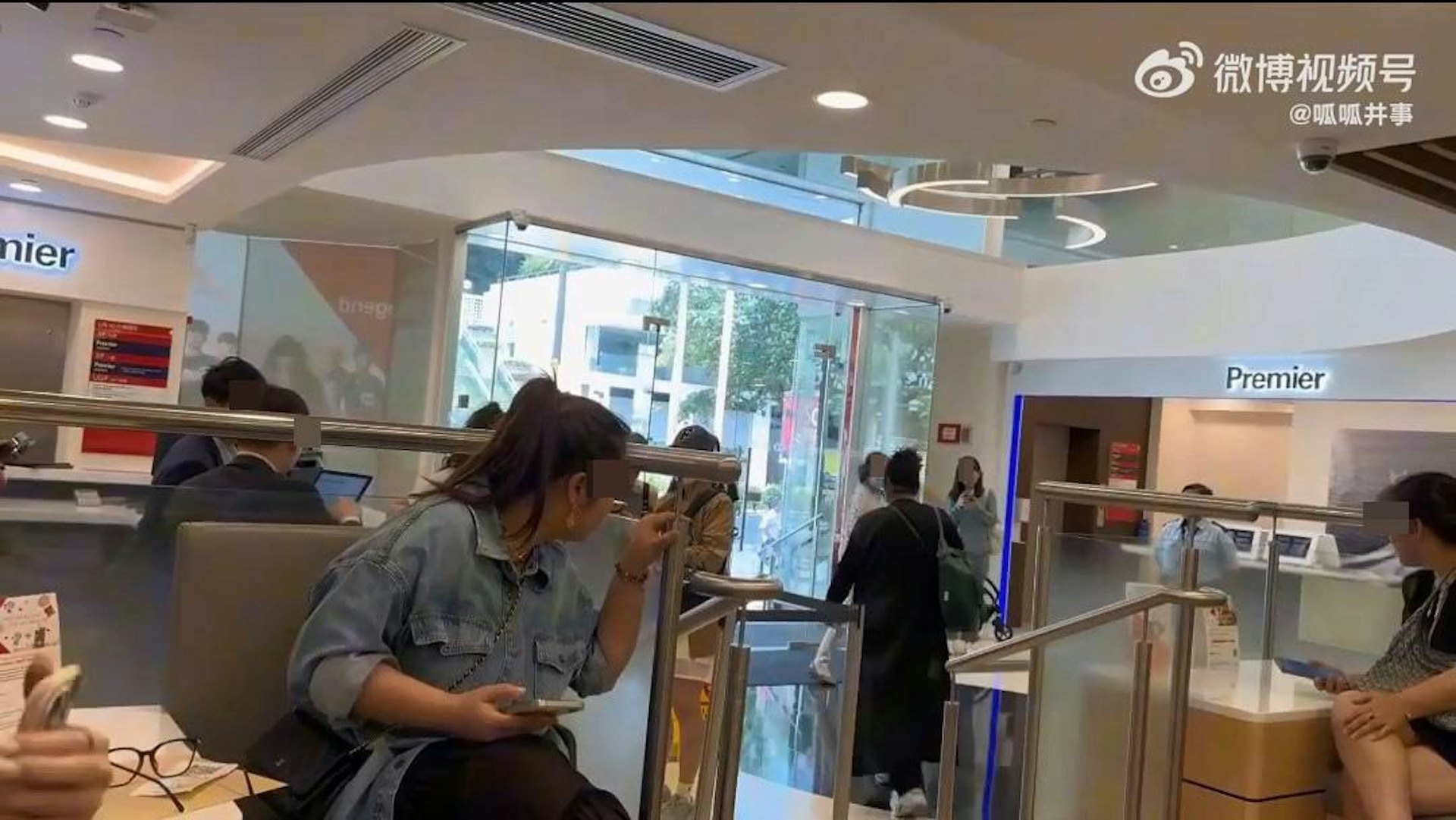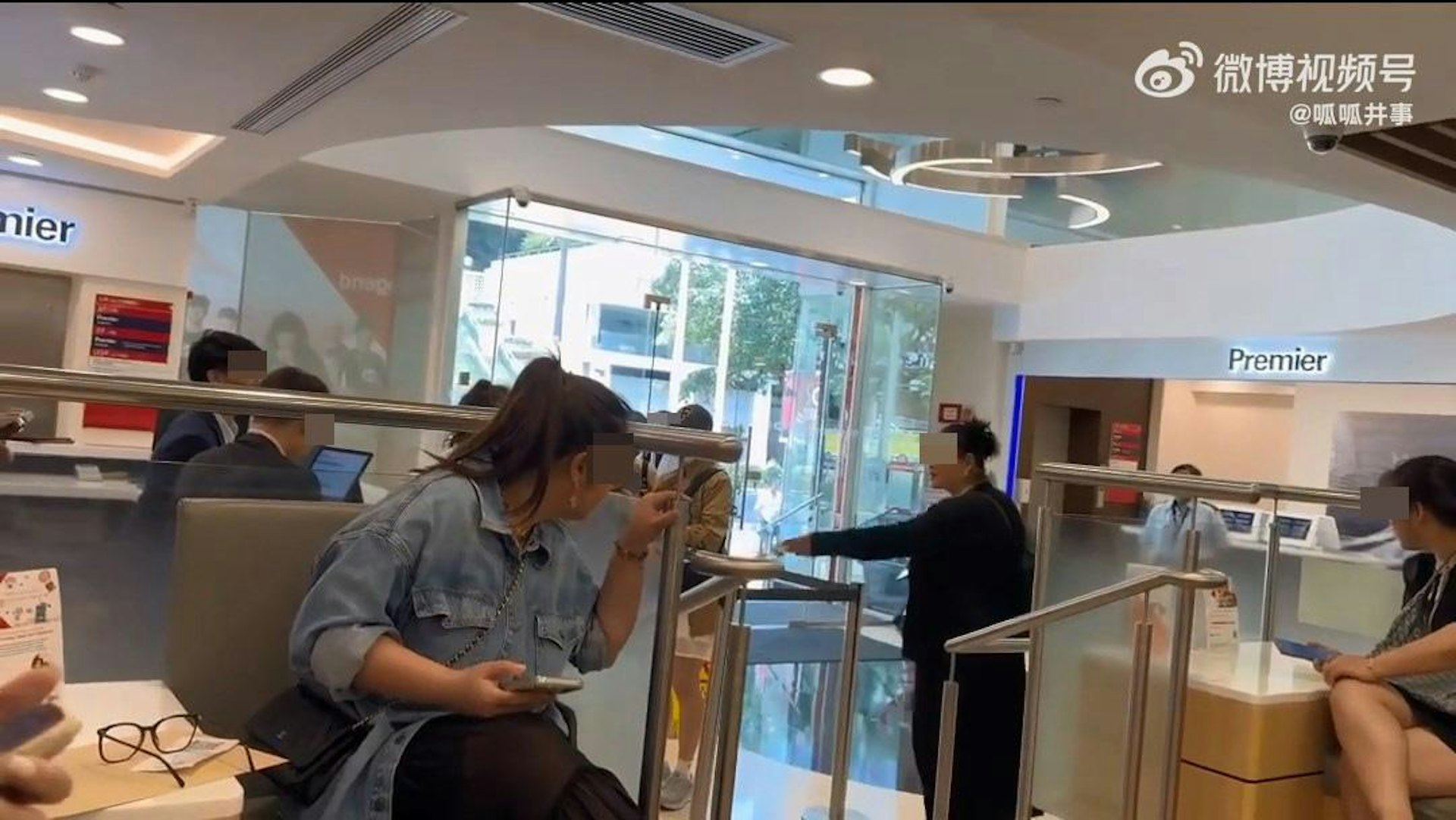 , @5 t( Q# E9 T8 ]- @9 H內地微博周一(5月6日)起瘋傳1段「內地大媽大鬧香港匯豐銀行」影片,指有內地婦人不滿說普通話被區別對待,咆哮怒罵職員。(微博影片截圖)) i2 R9 H2 I# J! x0 q s0 ^