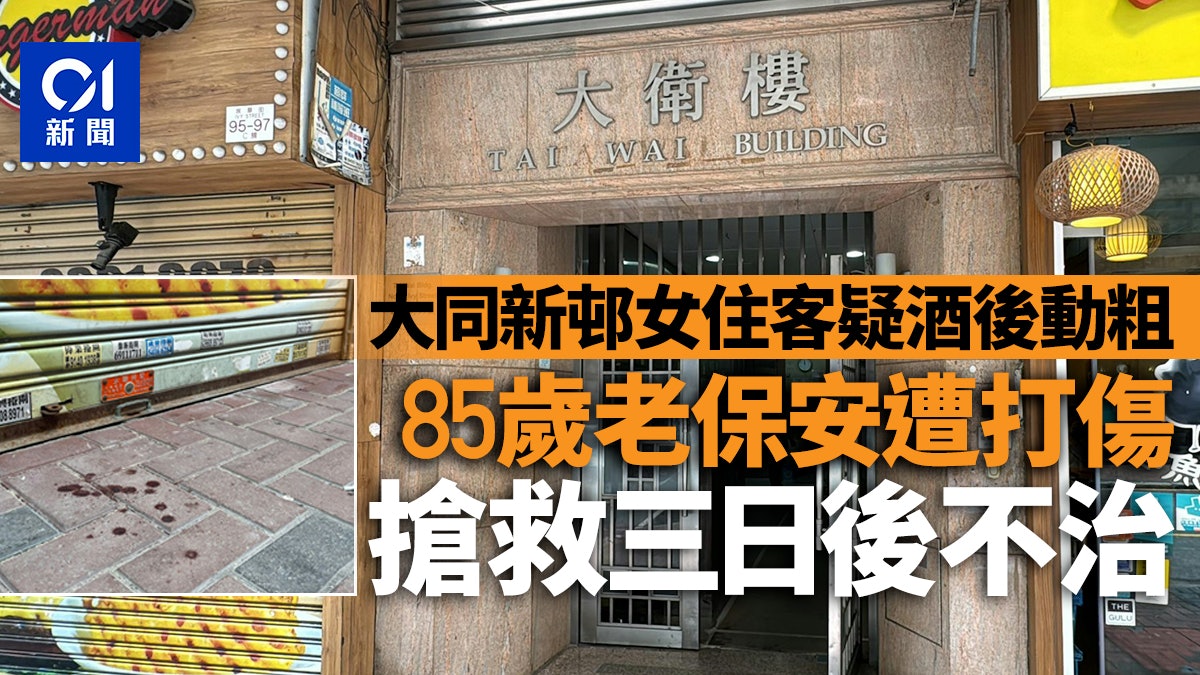 % U9 B- b6 g2 R. B1 htvb now,tvbnow,bttvb大角咀於周二(18日)凌晨發生傷人案,一名33歲姓藍女子疑酒後動粗,在大同新邨大衛樓地下先與其女友人爭執,其後出手襲擊一名85歲姓陳男保安員,導致他頭部受傷,重創昏迷送院。陳伯留醫期間情況危殆,最終於今日中午(21日)12時34分,證實不治。