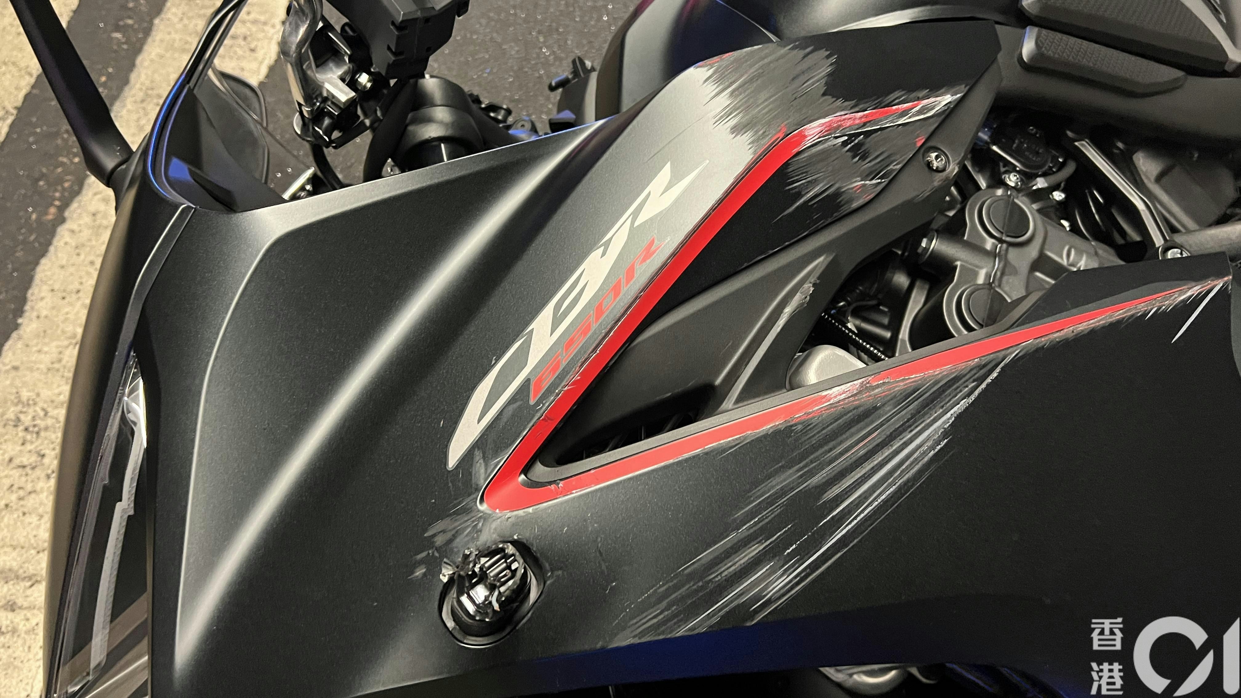現場可見,涉事電單車車身印有「CBR 650R」。(李家傑攝)