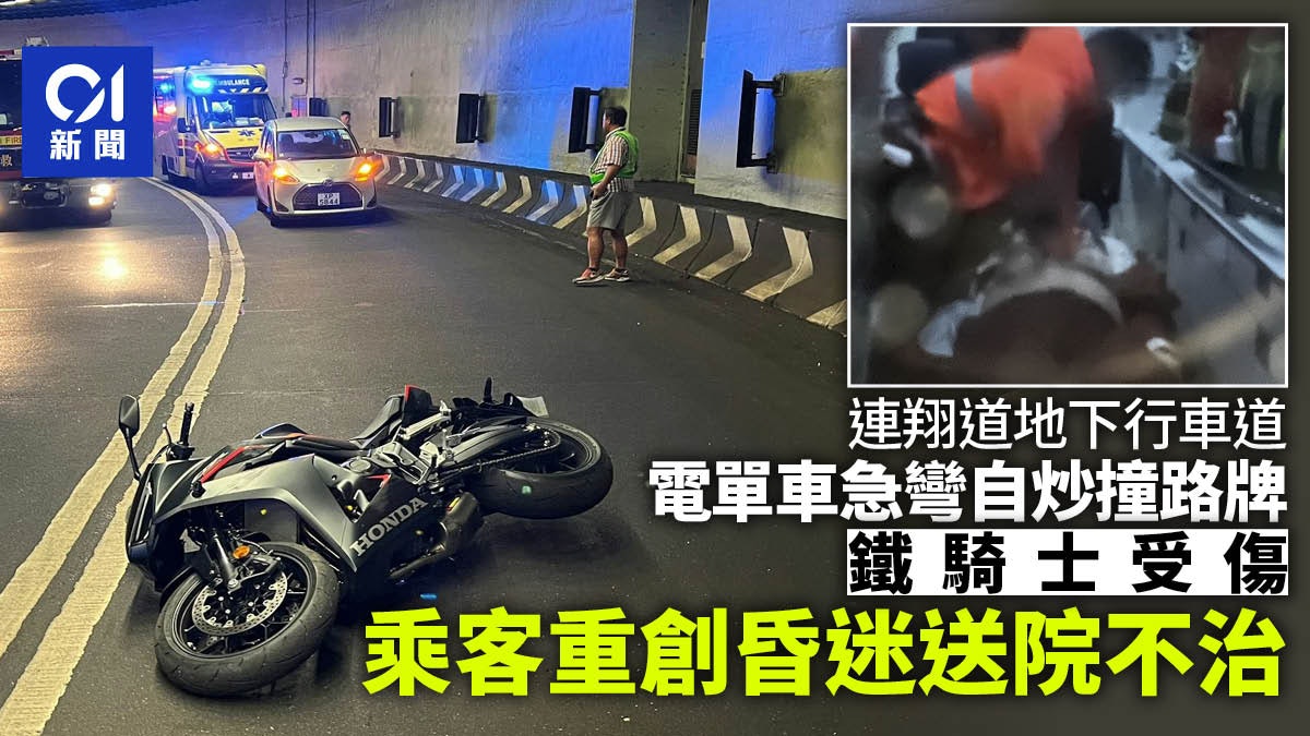 $ t0 ?0 C# T2 D- s* F }尖沙咀連翔道地下行車道發生奪命車禍,釀成一死一傷。今日(10日)凌晨零時許,一輛本田電單車沿尖沙咀連翔道地下行車道往西隧方向行駛,落斜駛至一個右彎時懷疑失控「自炒」,繼而連人帶車撞向左邊石壆和急彎路牌,鐵騎士和男乘客倒地受傷,鐵騎士手腳擦傷保持清醒,但男乘客陷入昏迷,送院時需接受心肺復甦,最終延至今日凌晨2時29分不治。
