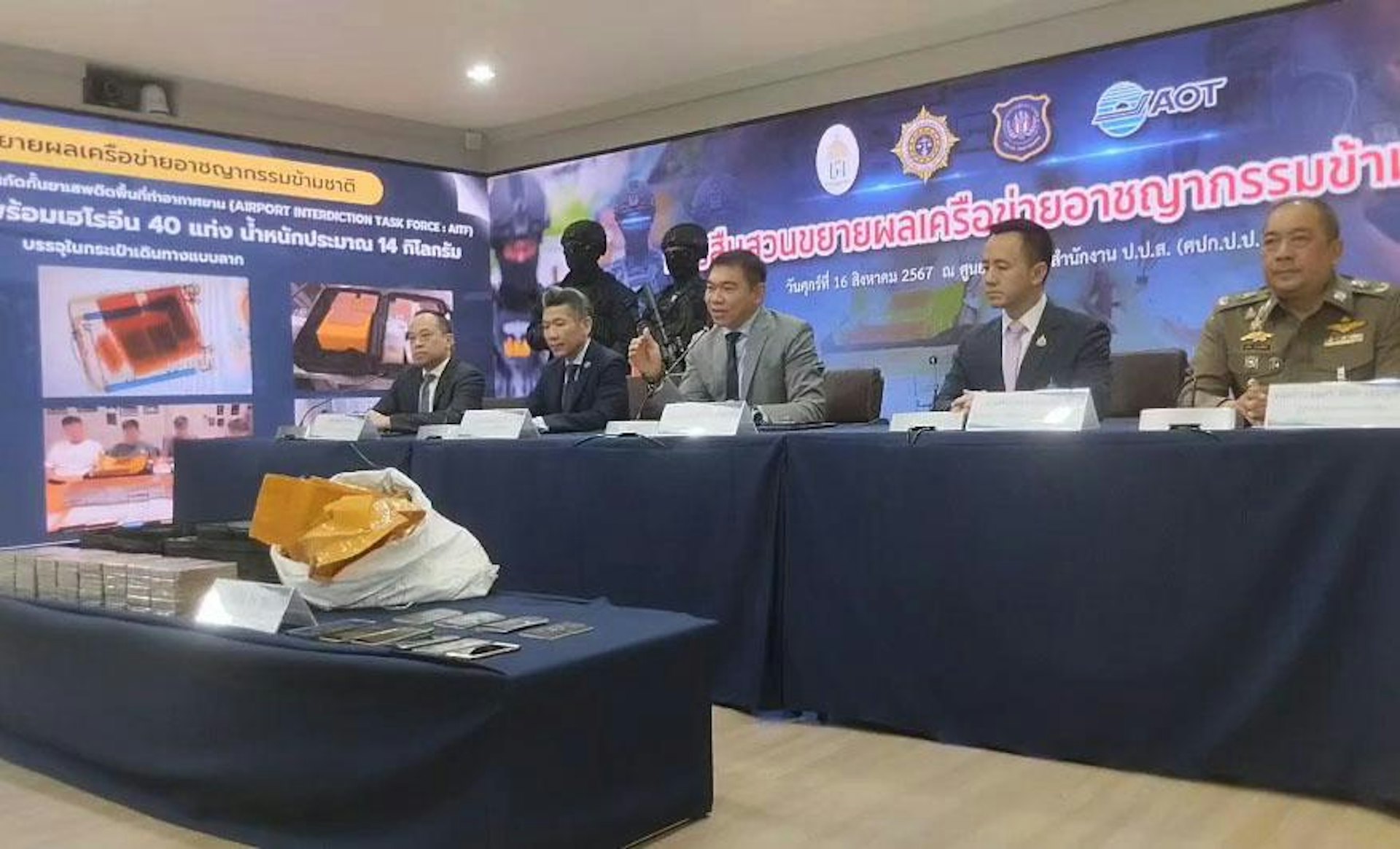 4 i% s$ _( ~; A4 y4 G6 g5 [2 TTVBNOW 含有熱門話題,最新最快電視,軟體,遊戲,電影,動漫及日常生活及興趣交流等資訊。泰國毒品管制局辦公室8月16日舉行記者會,公布在素萬那普機場破獲一宗偷運毒品案。(泰國毒品管制局辦公室圖片)