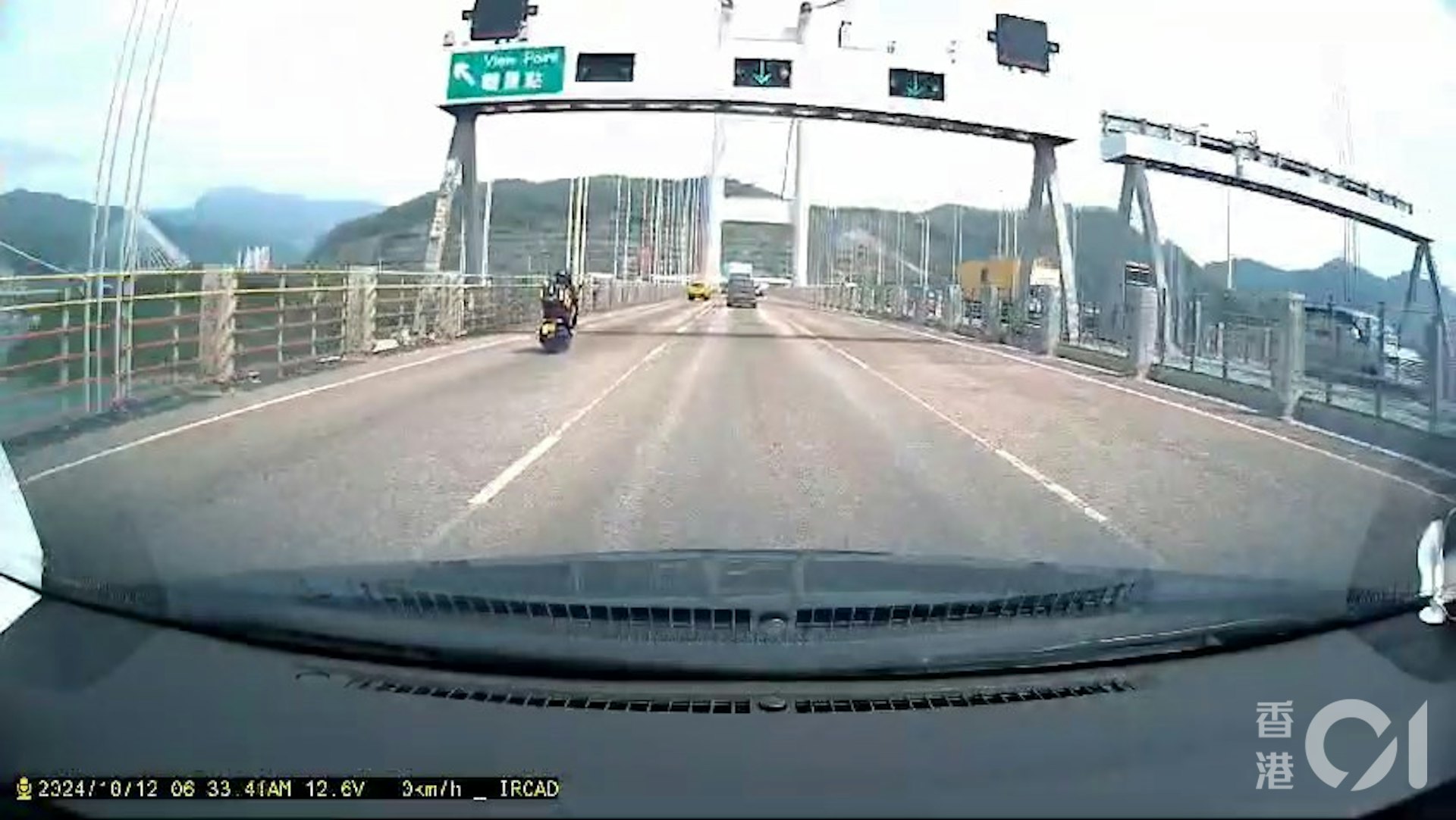 死者親人其後獲得一段事發時的車Cam短片,顯示事發時死者駕駛的電單車,一直沿青馬大橋的慢線行駛,車速並不算快,期間大橋「龍門架」最左方的顯示屏亮起紅色交叉,提示駕駛者慢線不通,需要轉線行駛,詎料事主疑未及察覺,結果懷疑收掣不及,電單車猛烈撼撞工程車車尾。9 f; { R0 Z* g1 h, c, F3 T, \- @