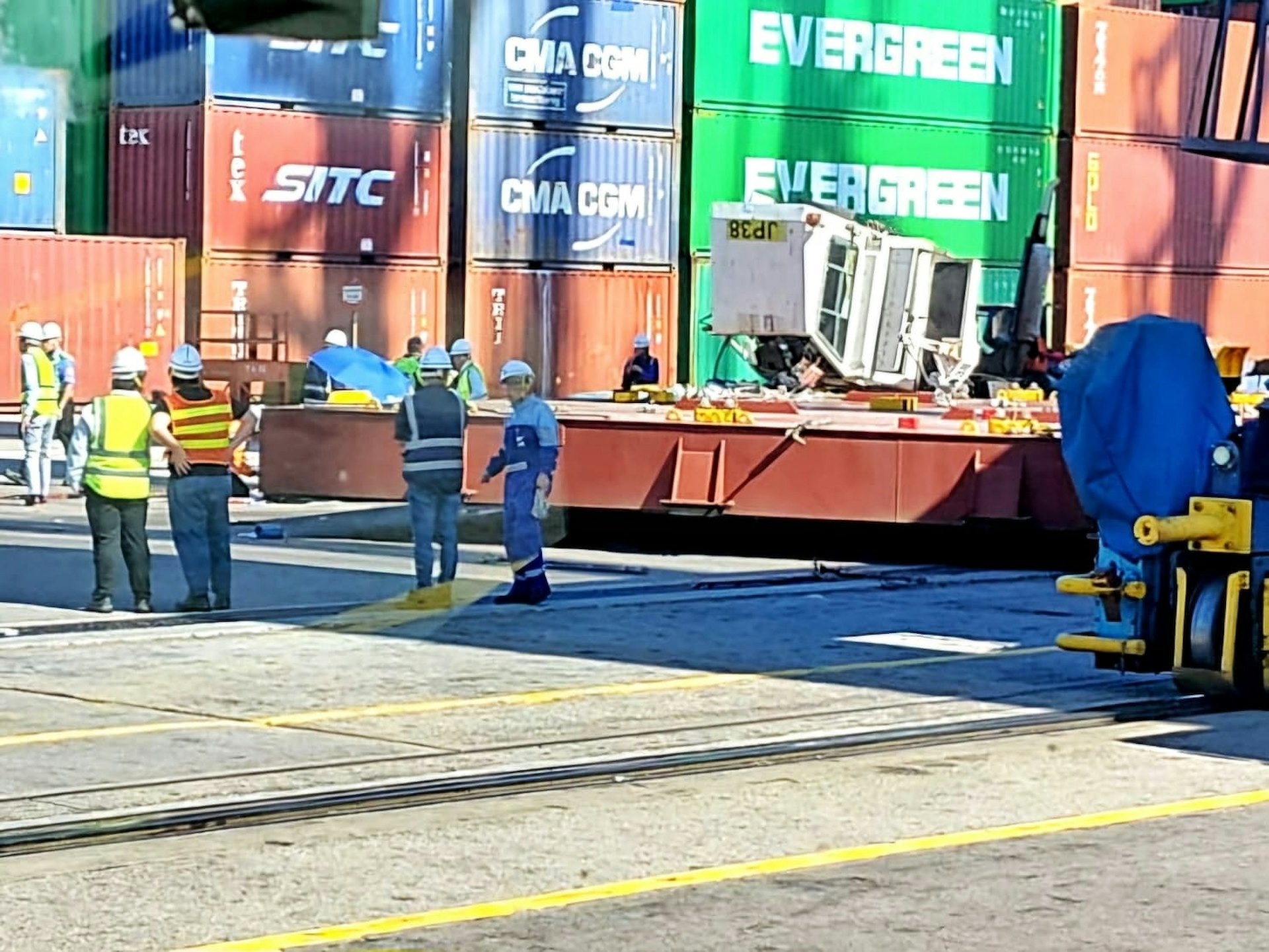 今日(4日)上午10時51分,葵涌6號貨櫃碼頭內,一輛拖頭於行駛途中向左切線時,意外撞及一個擺放於路邊的巨型金屬蓋。由於撞擊力頗大,導致駕駛室向前「耷頭」,姓鄒(72歲)司機慘被拋出車外,倒臥地下大聲呼痛,其他工人見狀報案。