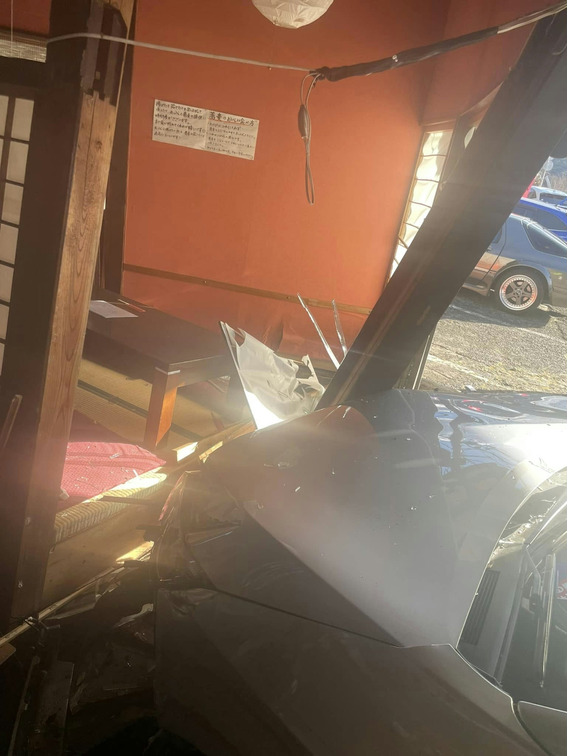 : c1 x3 \+ H1 L- _一名香港女子在日本靜岡縣自駕遊期間,駕車意外撞入一間麵店,造成兩人受傷,麵店嚴重損毀,麵店東主伊勢谷忠稱感到無助。(SBS News截圖)