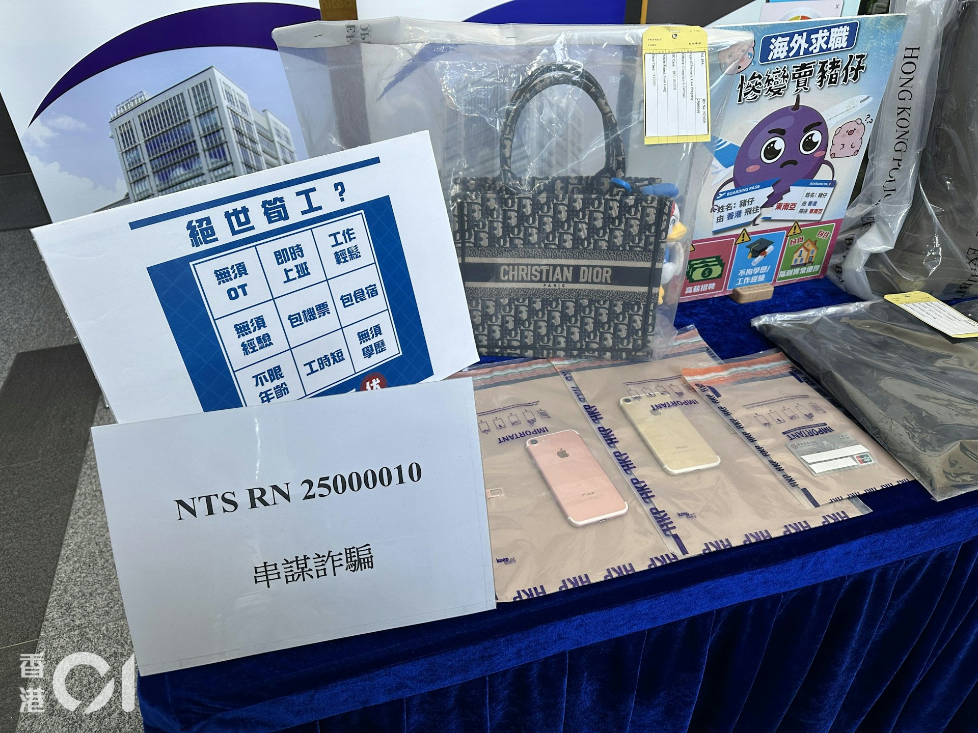 有組織罪案及三合會調查科署理高級警司張霆鋒、東九龍總區重案組第一隊總督察劉浩德、總入境事務主任(國際協作)蔡宇飛,今晚8時交代詳情時指,事主於去年10月,在社交媒體被人以12萬元招攬做帶貨員,聲稱由泰國帶鑽石前往去台灣,最終被騙至園區,逃走失敗後被逼進行詐騙,因多次不達標,遭到毒打及扣起膳食。
