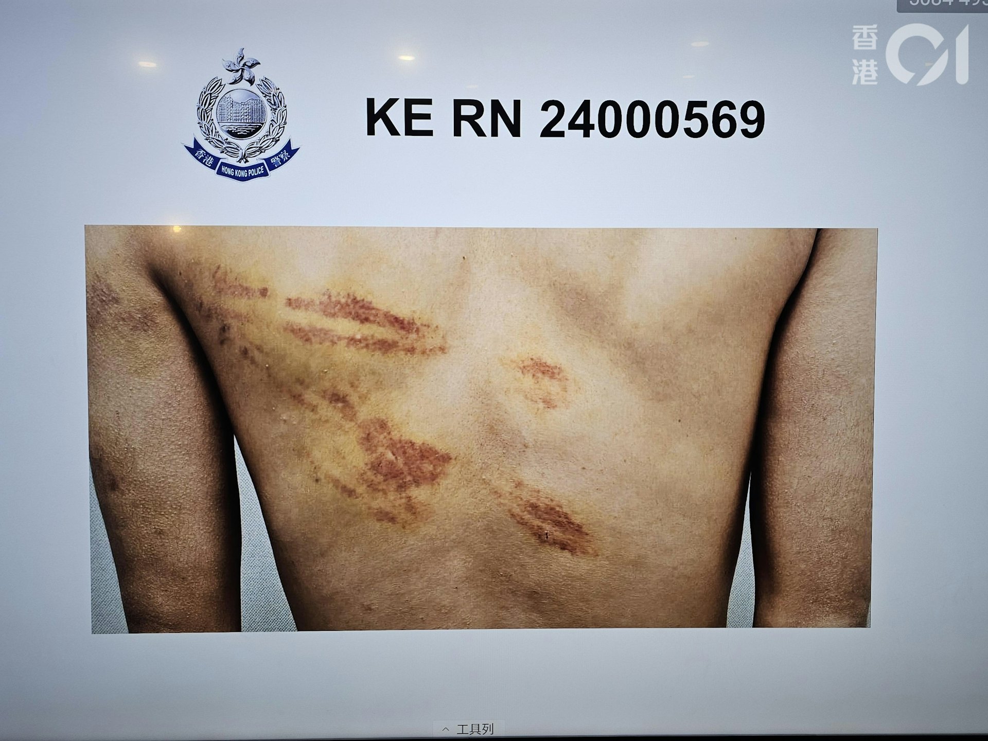 在園區內,事主被逼進行網上行騙,每日工作17小時,由早上至半夜。過去3個月內因多次不達標,因而被毒打,扣起膳食,故獲救後身體上仍然有傷。警方圖片可見,事主身上傷痕纍纍。- A% _; k4 q& Q