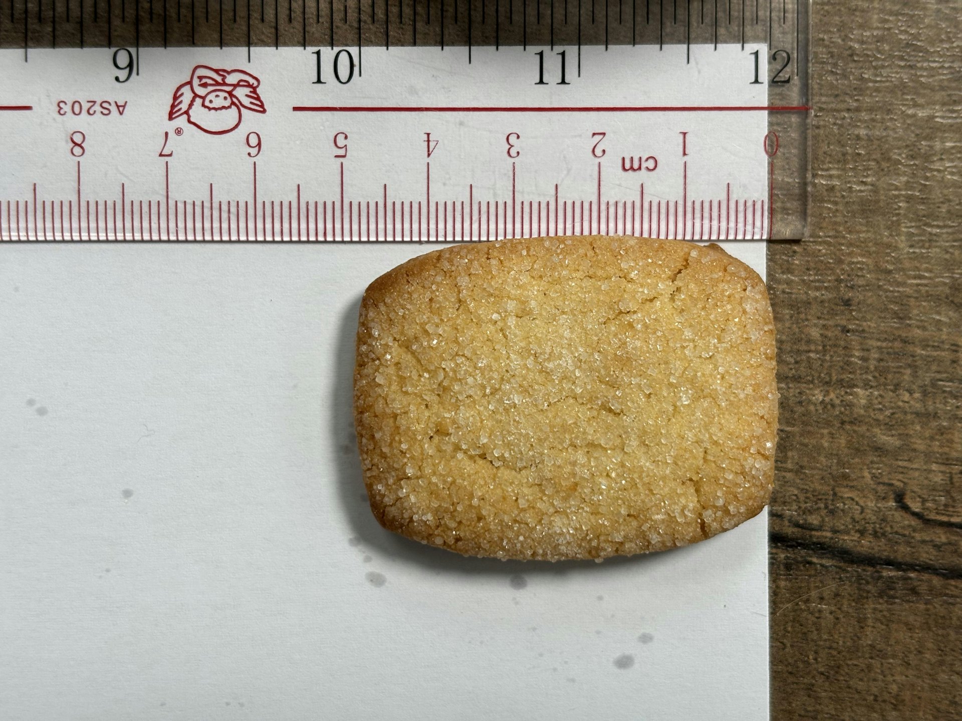 左邊為港澳版曲奇,右邊為疑似上海版的曲奇。相較之下,疑似上海版的較細塊。(譚曉彤攝)