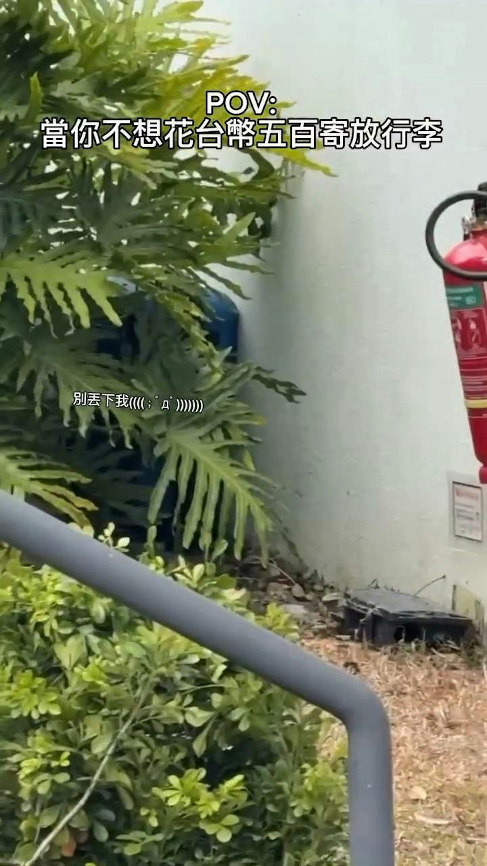 台女輾轉發現1處隱蔽草叢,於是小心翼翼把行李篋藏進草叢。(threads影片)4 }( Y( w* G- ? O4 Z2 L