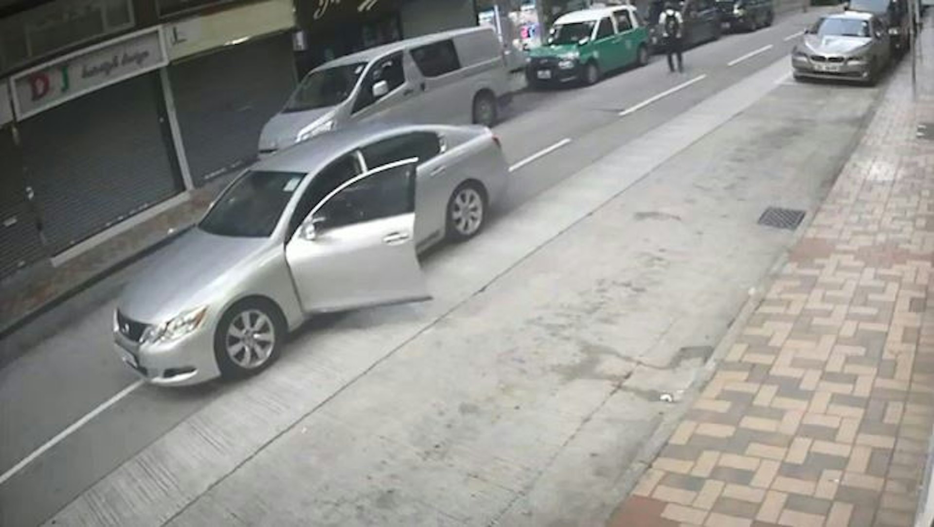 # g9 r+ P+ u& g( R+ }歹徒乘私家車馳至餐廳外。(CCTV截圖)
