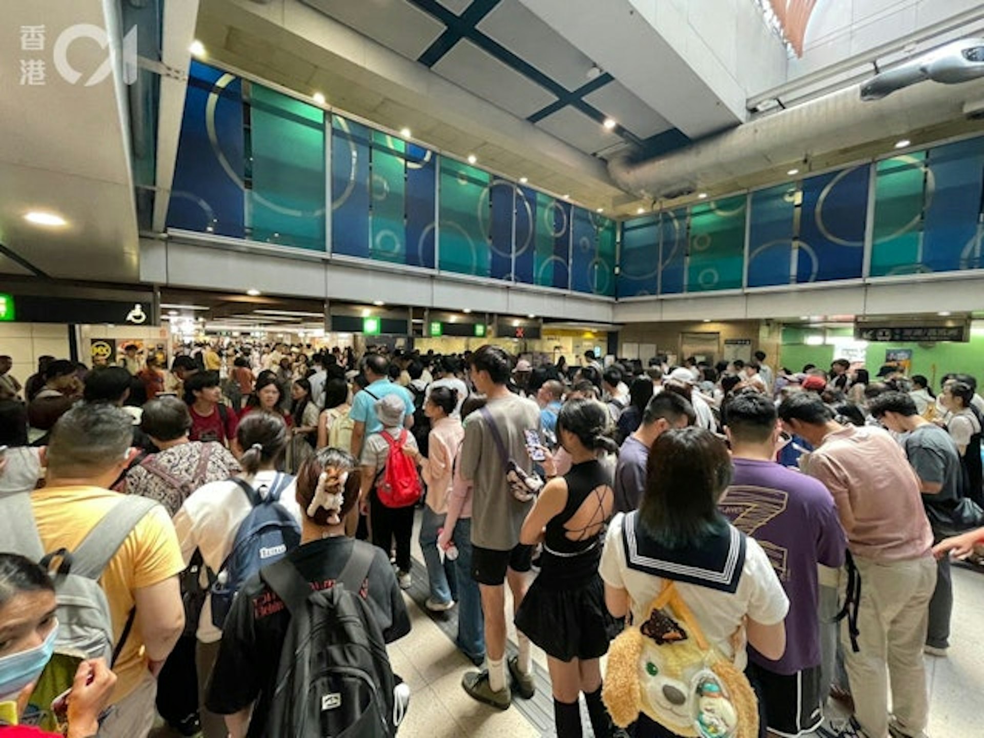 5月2日,旺角港鐵站在付費區閘機前排隊的絕大部份為內地旅客。(潘耀昇攝): q6 }) e g1 b$ a6 S