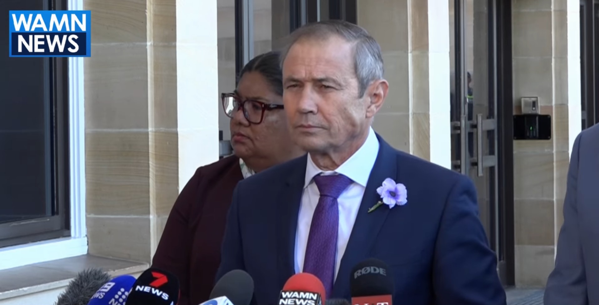 ' u' y( H9 f# ~1 n: \西澳州長庫克(Roger Cook)今年5月底見當地傳媒。(WAMN News片段截圖)