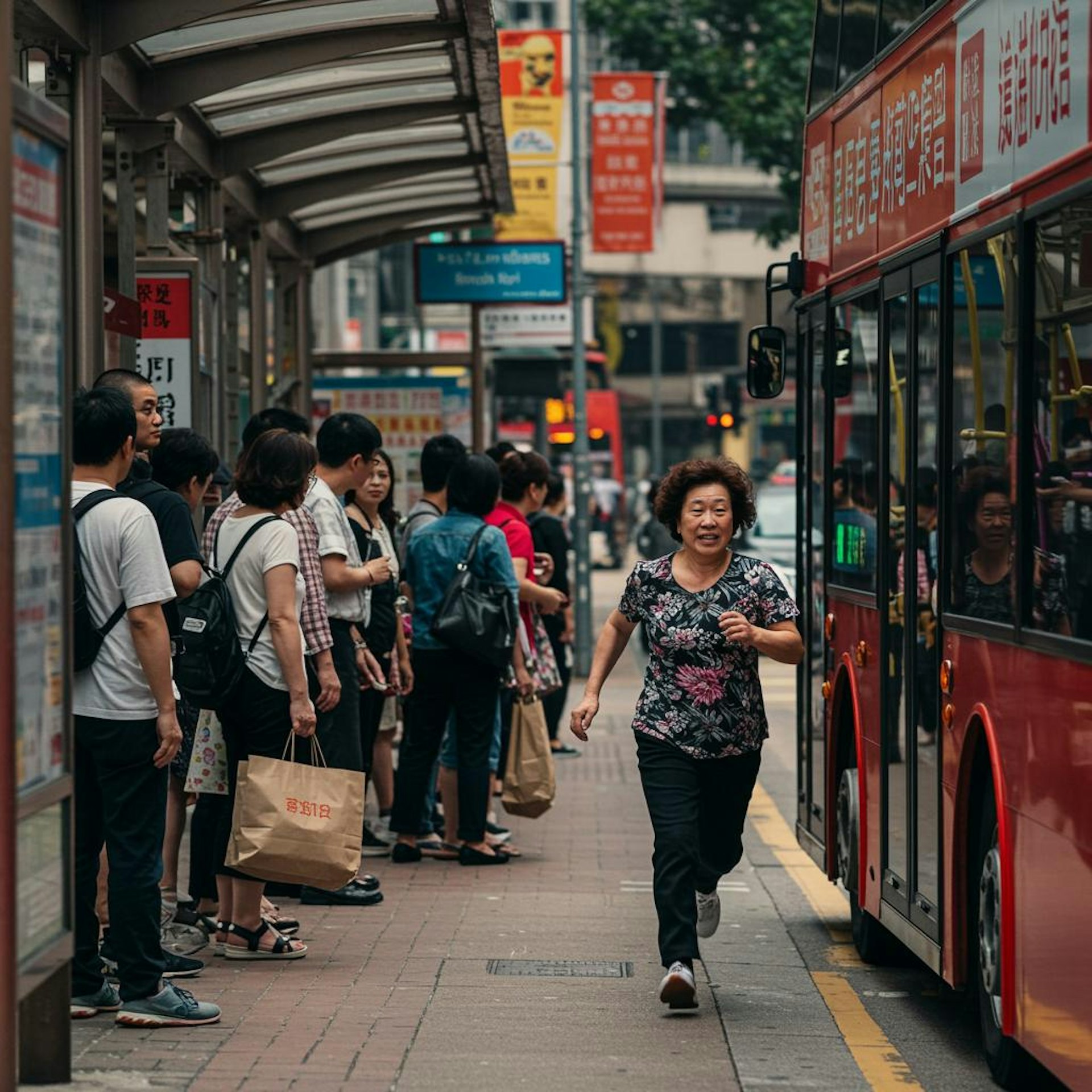) \. E9 w! x& Q. A/ _tvb now,tvbnow,bttvb樓主指,巴士一開門就有1名內地大媽衝前想「打尖」上車,她立即抓着大媽叫排隊,然而大媽反嗆稱自己「排第一」,隨即惹來排隊乘客公憤。(AI生成圖片)
