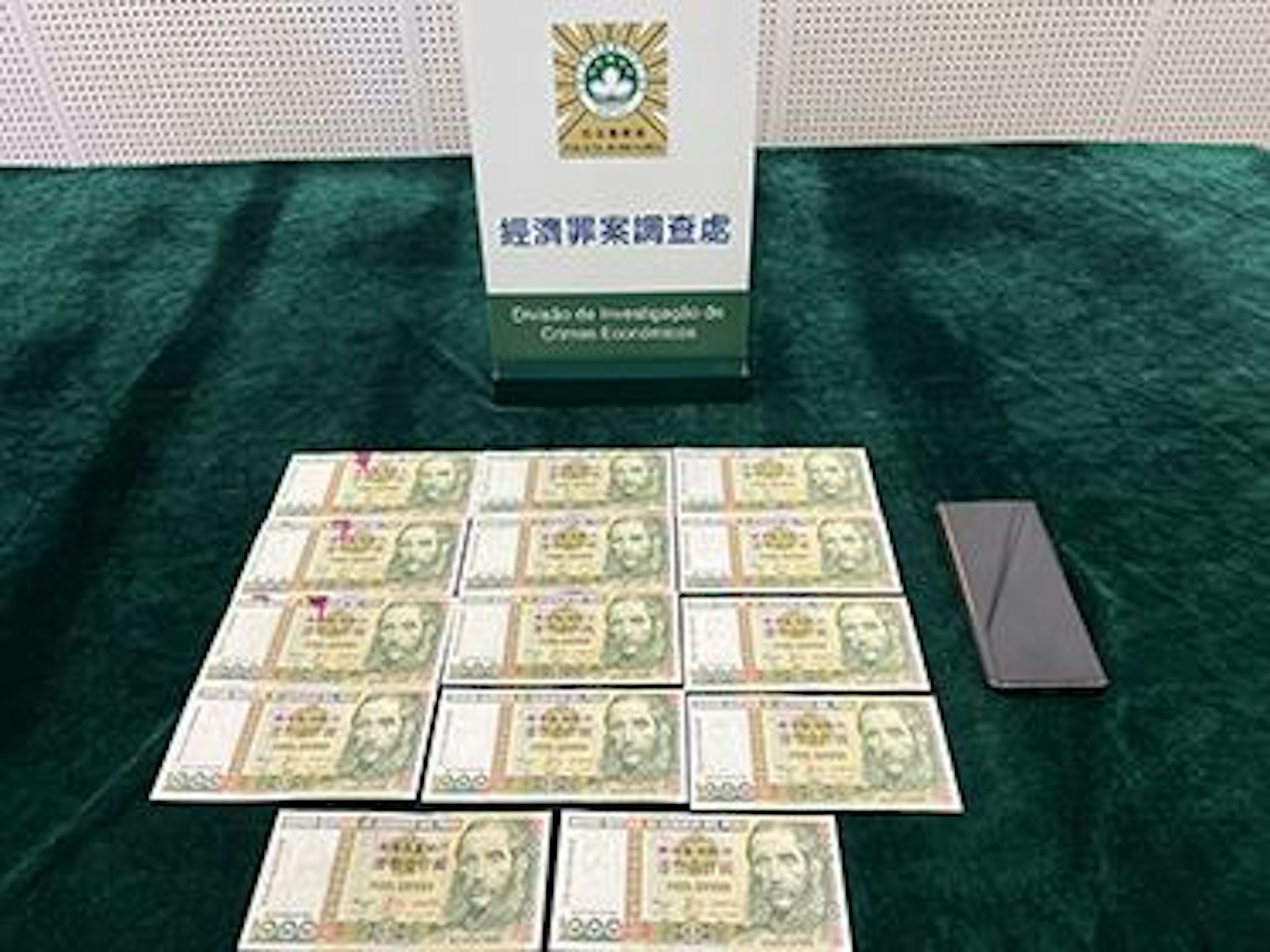 澳門經濟罪案調查處跟進調查並經刑事技術廳鑑定,證實14張涉案鈔票全為已停用的秘魯幣,其中央位置被打印上「香港匯豐銀行」及「港幣壹仟圓」字樣,屬偽造貨幣。司警隨後以「將假貨幣轉手罪」,將涉案內地男子移送檢察院偵辦。( \ q9 T& x6 e/ R1 n