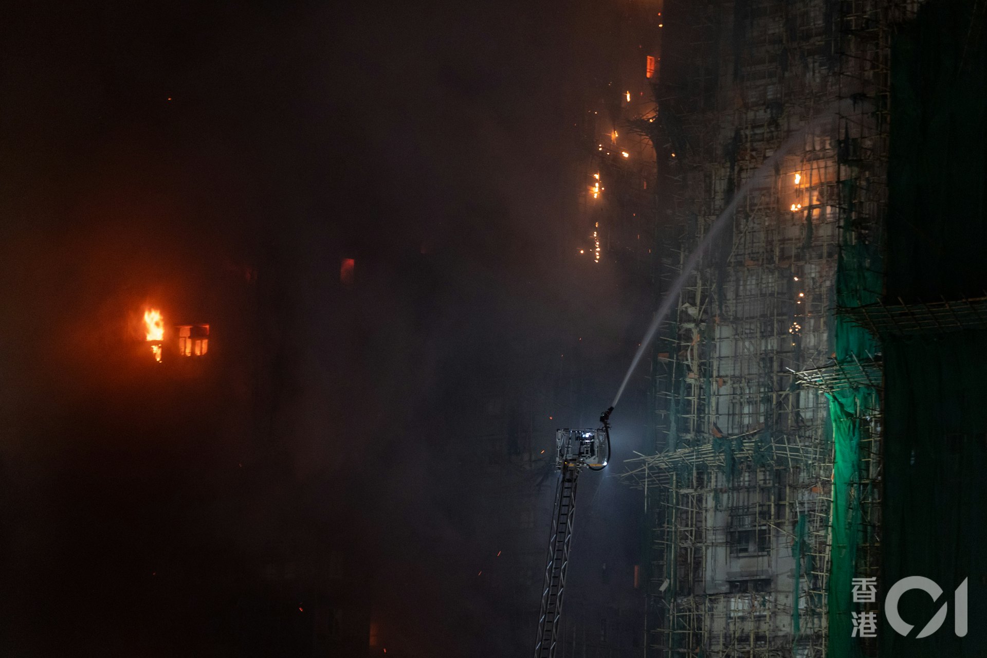 大埔宏福苑五級火,救援行動於11月27日凌晨持續。(陳永武攝)