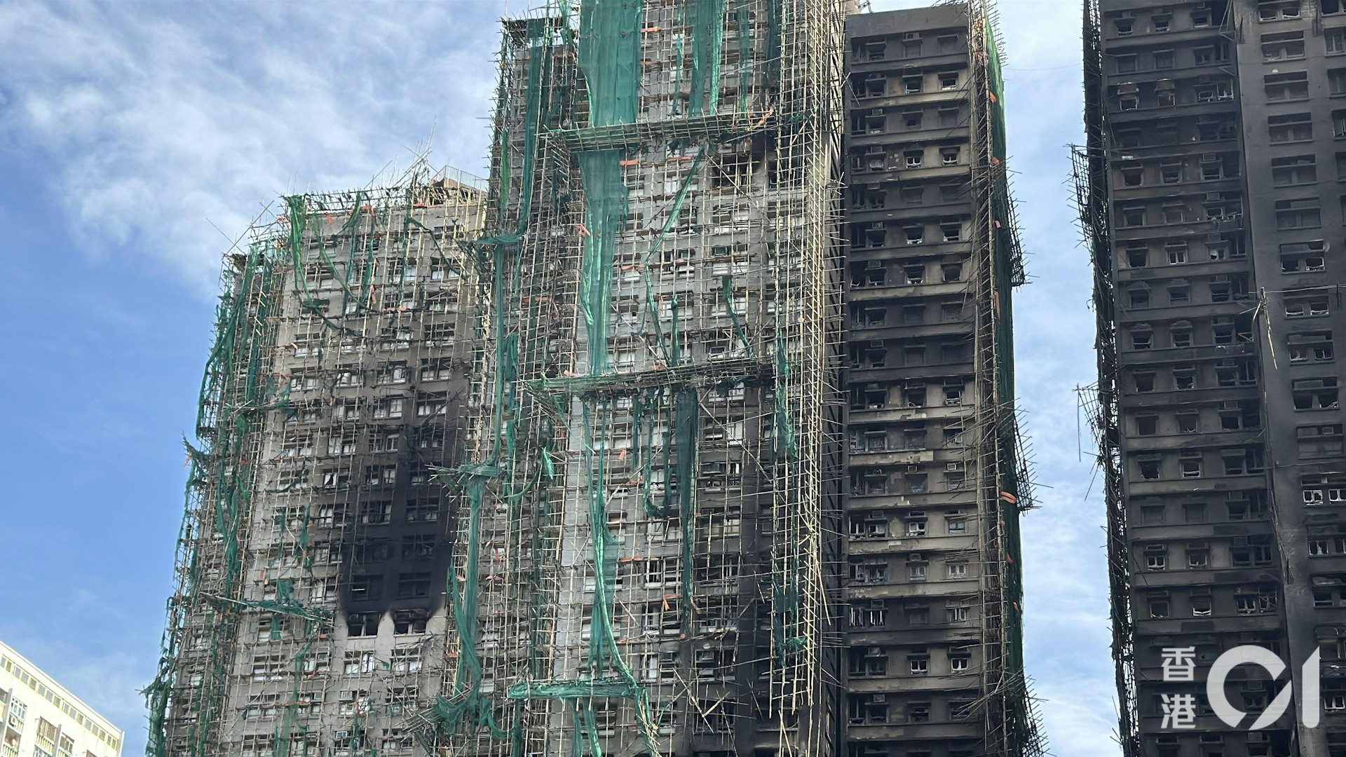 + w; Y+ A7 d6 \; w4 ^宏福苑11月26日發生五級火,外牆棚網燒燬後,可見牆上有不少發泡膠。(梁鵬威攝)tvb now,tvbnow,bttvb, {& J6 O4 ]+ i+ G% R5 U2 e