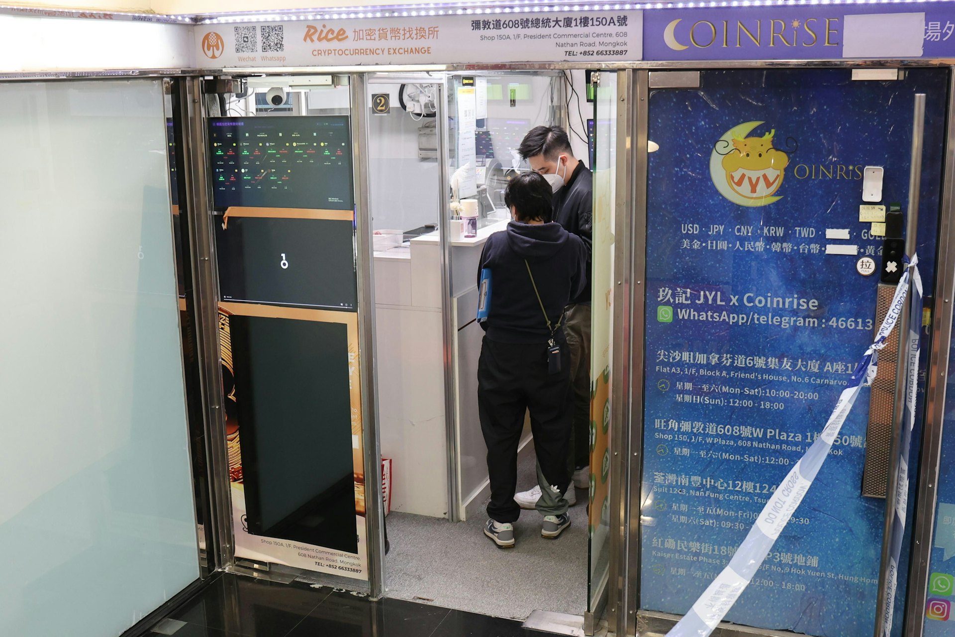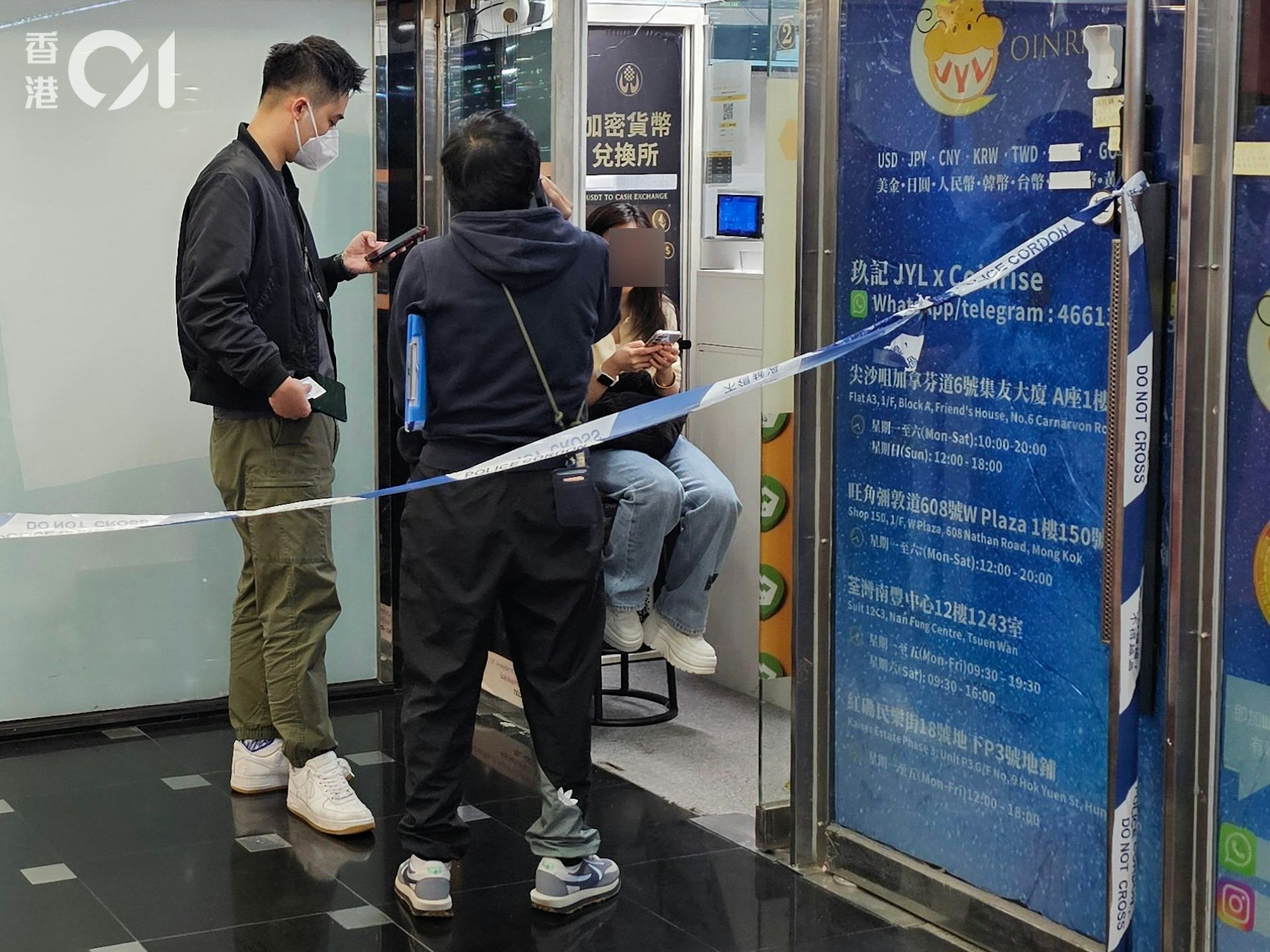 0 W0 G" }) P# p5 ~6 P$ D( U5 f& Vos.tvboxnow.com旺角彌敦道608號總統商業大廈W商場一間加密貨幣找換店店主遇劫,警方封鎖現場,女職員在店內助查。 (梁偉權攝)