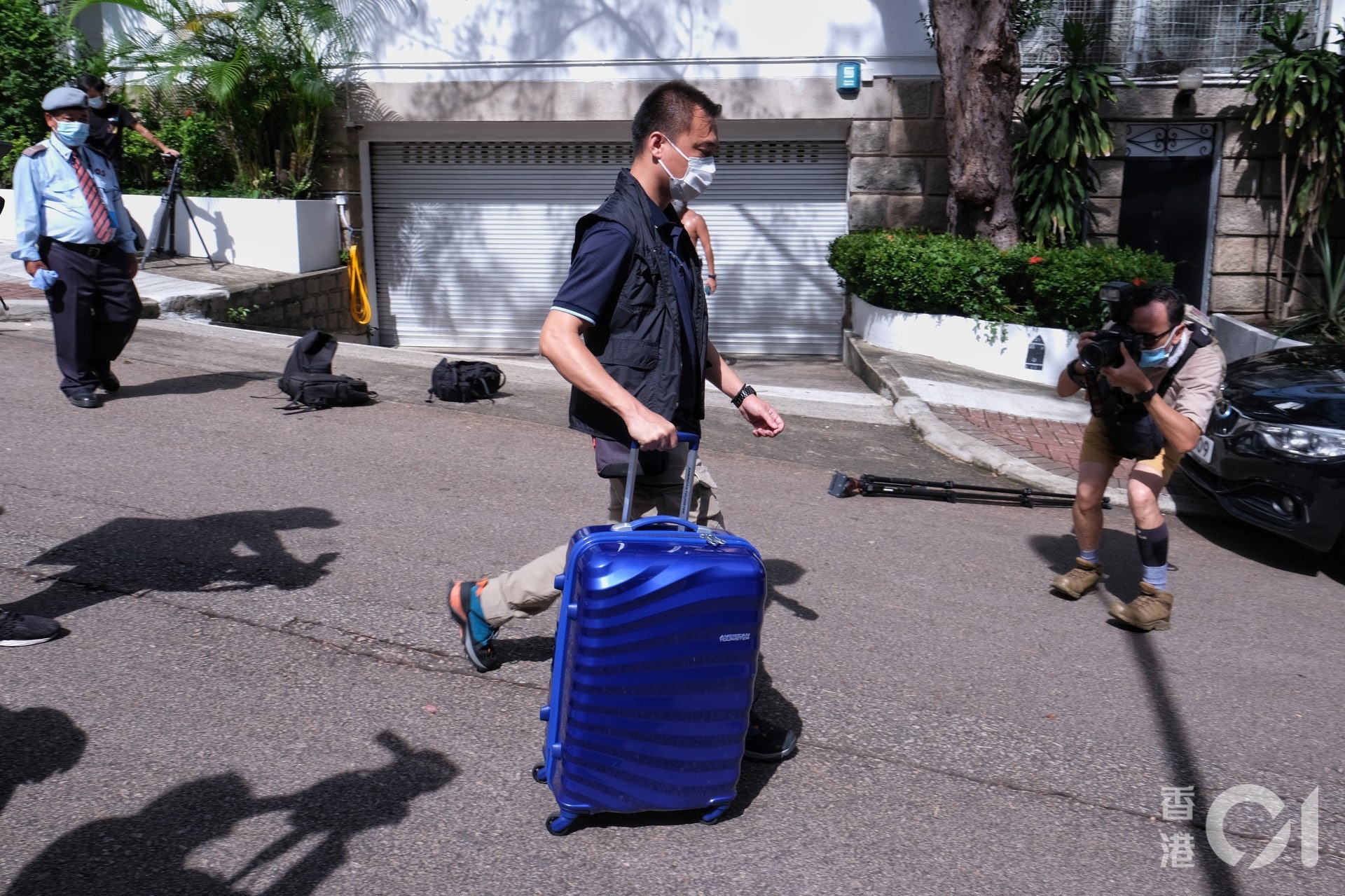 【黎智英被捕】探員在黎智英大宅外戒備。(丘啟謙攝)
