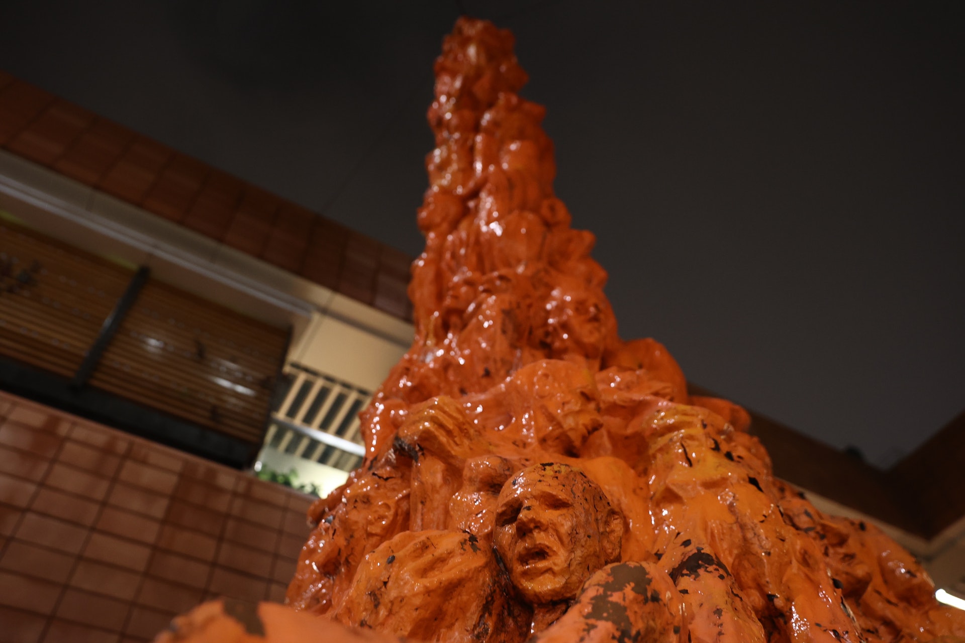 5月2日,今年是六四事件32周年,香港大學學生會夥同支聯會到港大洗刷「國殤之柱」。(盧翊銘攝)os.tvboxnow.com# z* I9 D' K, \. b) I