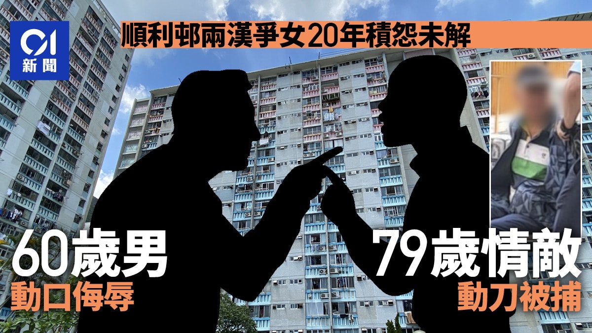 今日(7日)下午4時許,兩名老翁於秀茂坪順利邨利業樓的平台發生爭執,其間兩人吵得面紅耳熱,未幾又擸凳又擸刀,途人擔心有意外於是報警。警方接報到場,經調查後,以涉嫌「藏有攻擊性武器」拘捕一名78歲姓袁老翁,事件中無人受傷,案件交由秀茂坪警區刑事調查隊跟進。# q5 x9 A H2 F- ^# I. D