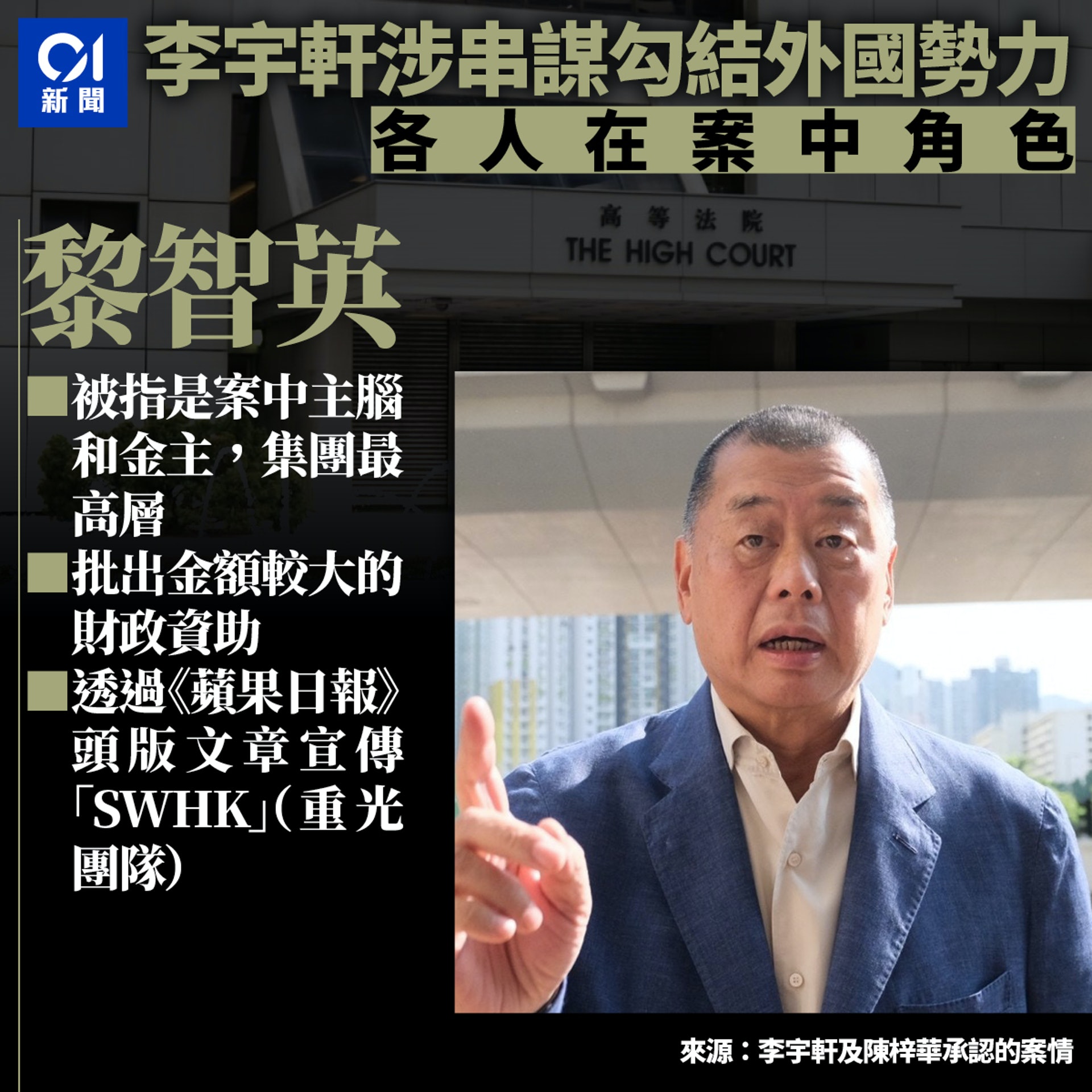 ' @# B% s- g) s$ {! C李宇軒等認串謀勾結外國勢力 指黎智英是背後主腦及金主!