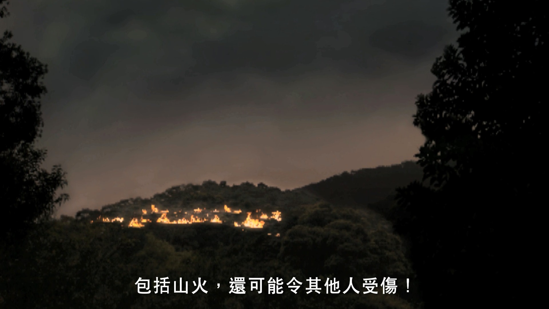 漁護署、民航處、消防處聯合廣告,提醒市民勿放孔明燈。(政府影片)