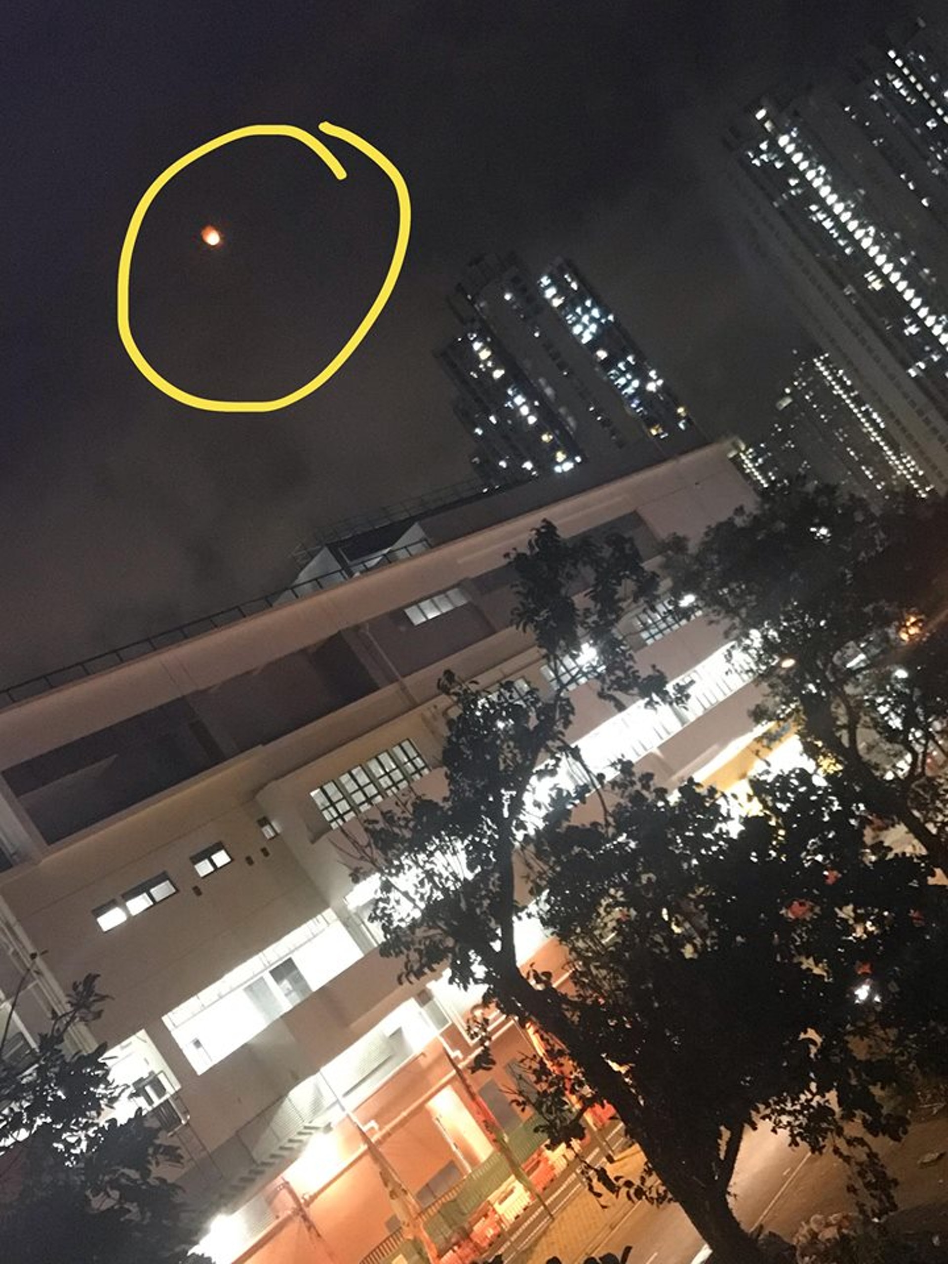 大興邨上空亦見到孔明燈。(香港突發事故報料區圖片)