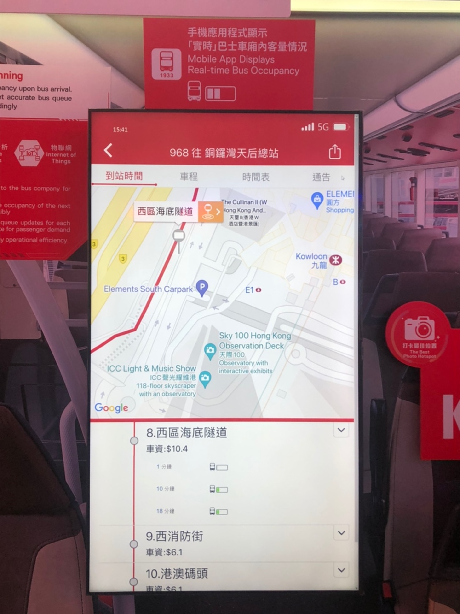 4 O! i& {5 V( D9 e九巴與SmarTone合作推出 5G 巴士,在 20部士提供免費5G Wi Fi服務 。(黃慧珊攝)1 D6 H4 n$ x8 _8 e