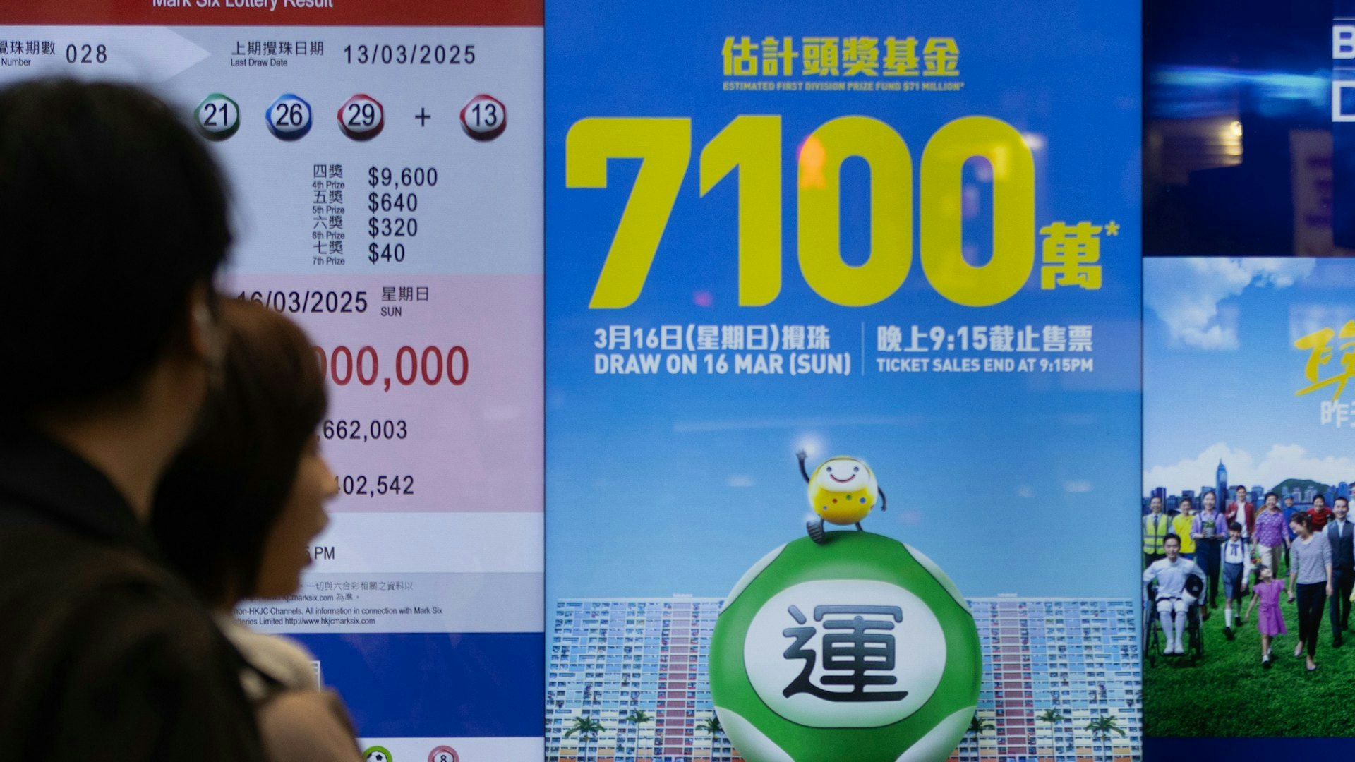 7 u0 B# W% g& T" C$ ^os.tvboxnow.com25/029期六合彩頭獎1注中,每注派72,097,390元。(資料圖片)