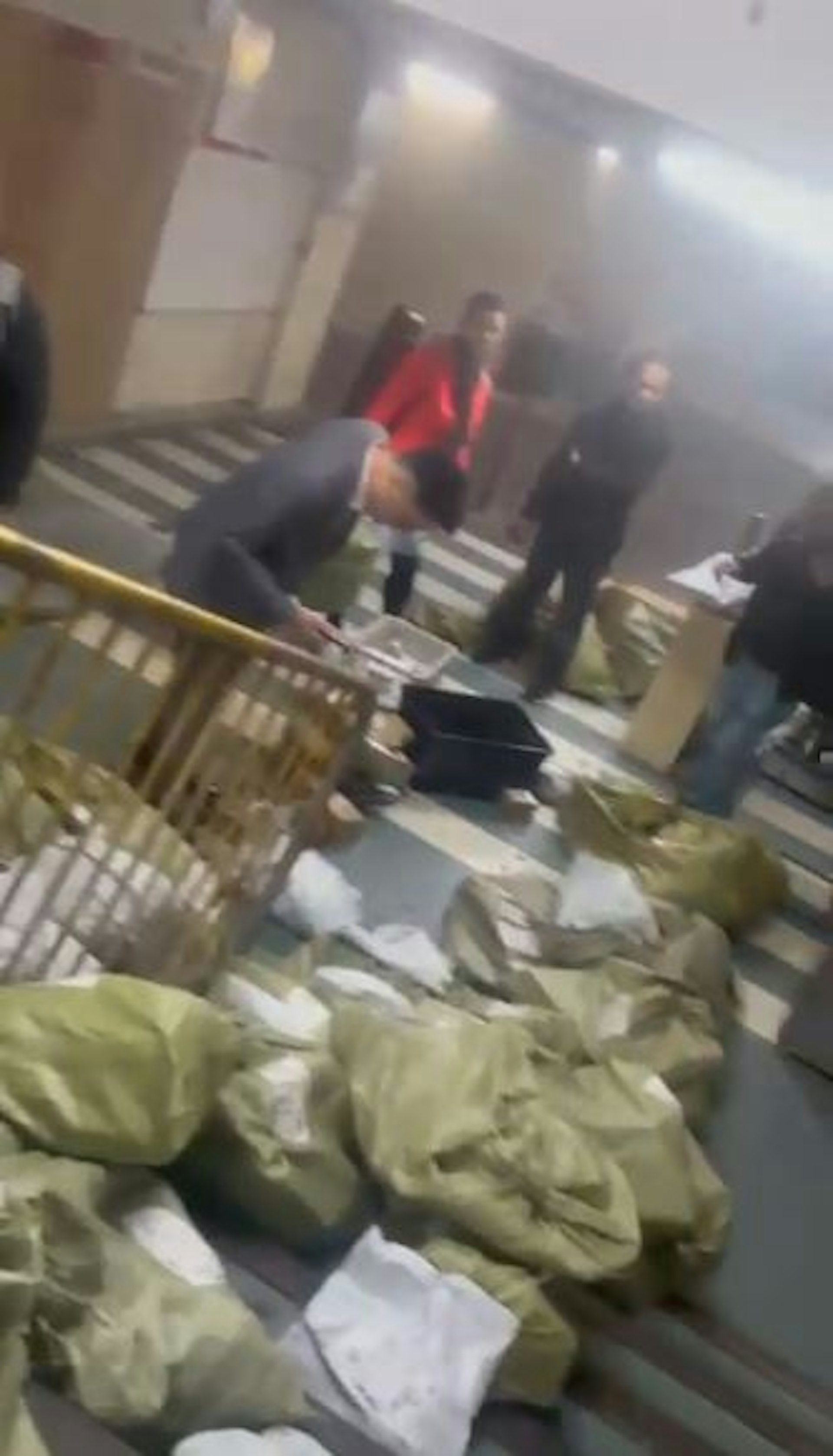 部分貨物擺放在附近梯間,一名中年男子自稱為義工協助找貨。(讀者葉先生提供)# @, M+ p( V# E% \0 g6 i
