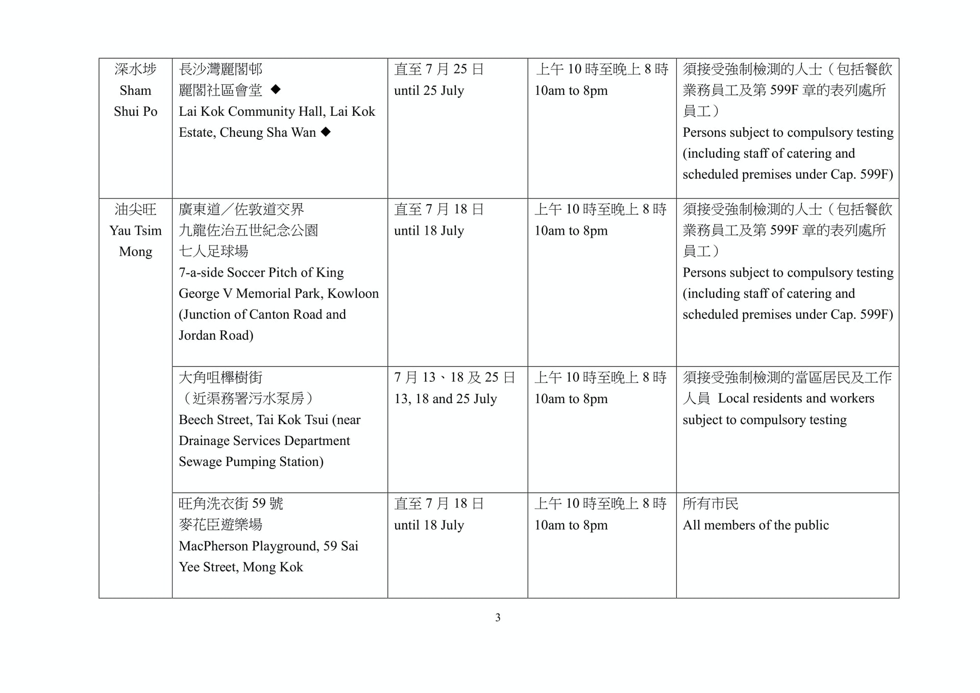 各區向公眾提供服務的流動採樣站 (截至7月12日)os.tvboxnow.com* z& R7 E, l1 H, z