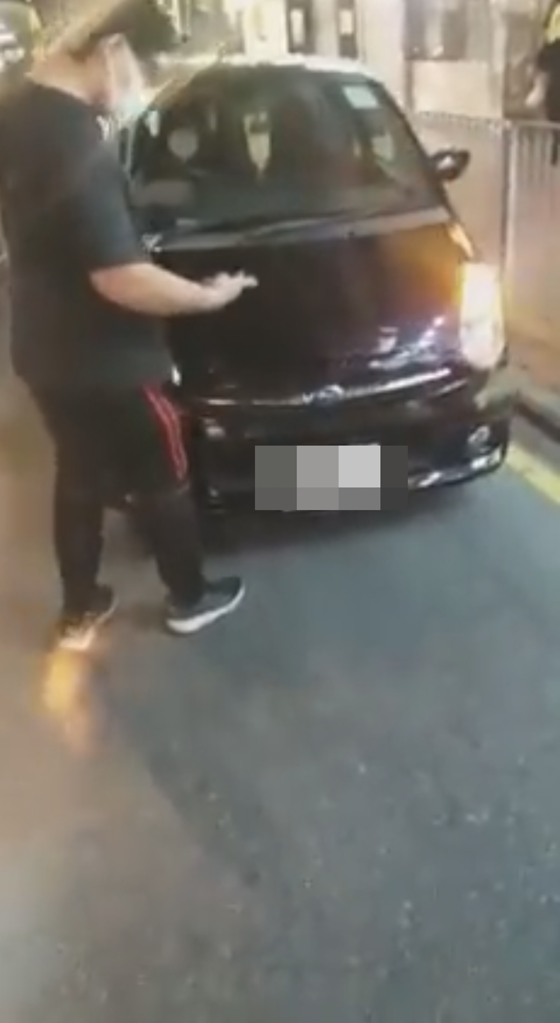 6 v# E1 C: {, W; c' f事源有一輛黑色私家車撞及一輛停泊在路邊白色客貨車,白色客貨車男司機當時並不在車上,後來趕回現場與黑色私家車女司機發生爭執,一輪爭執後女司機答應賠償,更到附近提款機提款後返回現場。惟女司機突然發難返回私家車打算離開現場,男司機於是站在私家車前阻止她駛離,Kenny遂舉機拍攝打算紀錄事件。