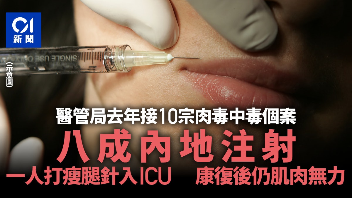肉毒桿菌可用於醫學美容,若過量注射或藥物品質有問題,則有可能引致中毒。醫管局香港中毒控制中心去年接獲10宗肉毒桿菌毒素中毒個案,按年增加9宗,為近年最高;而中毒個案中佔8成是在内地注射。
