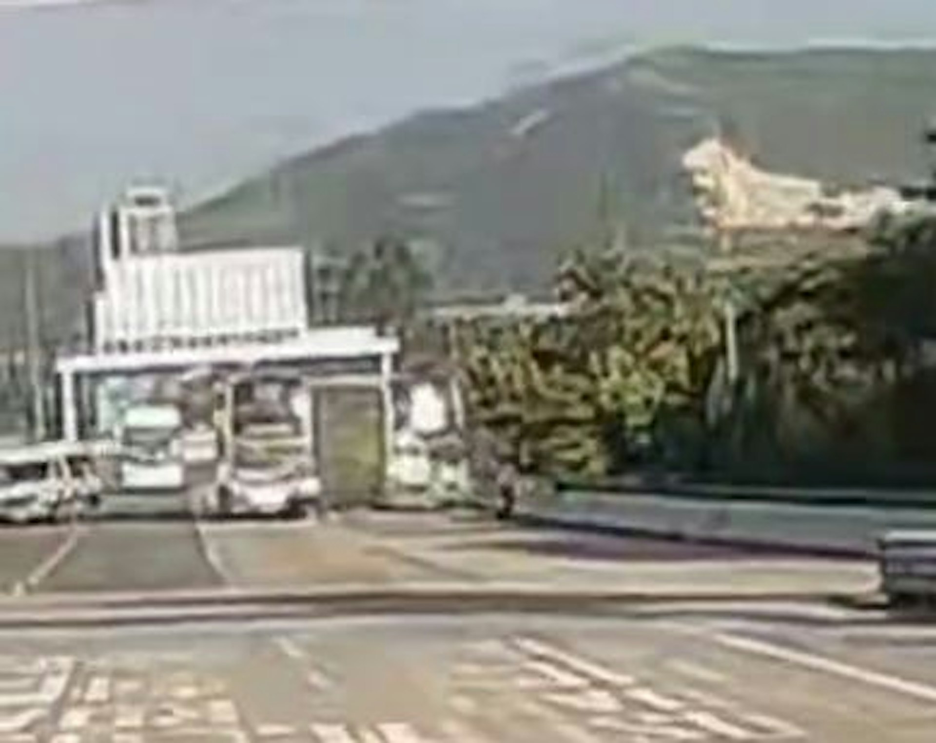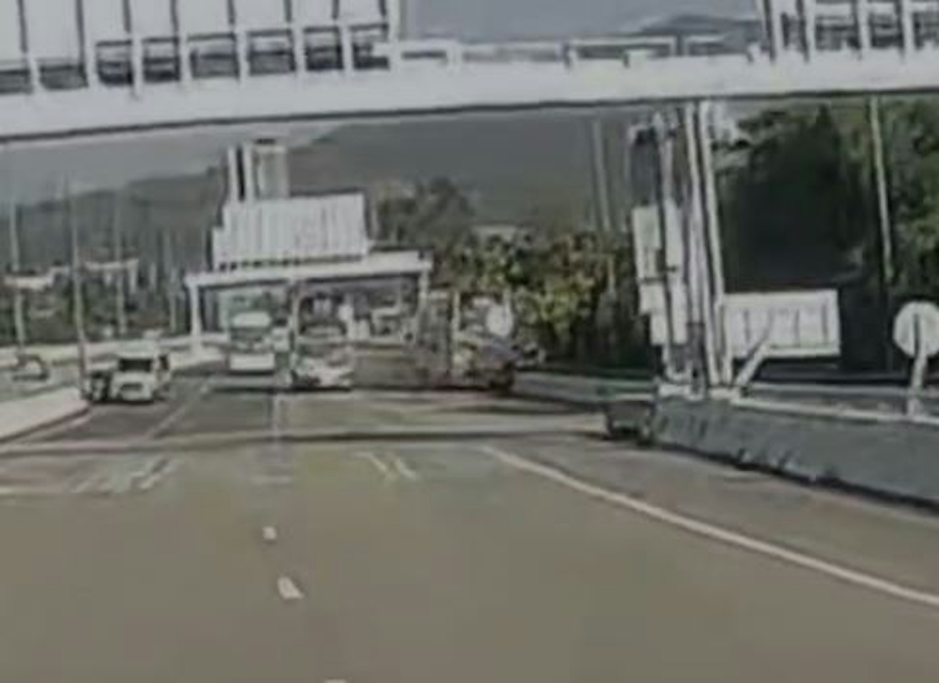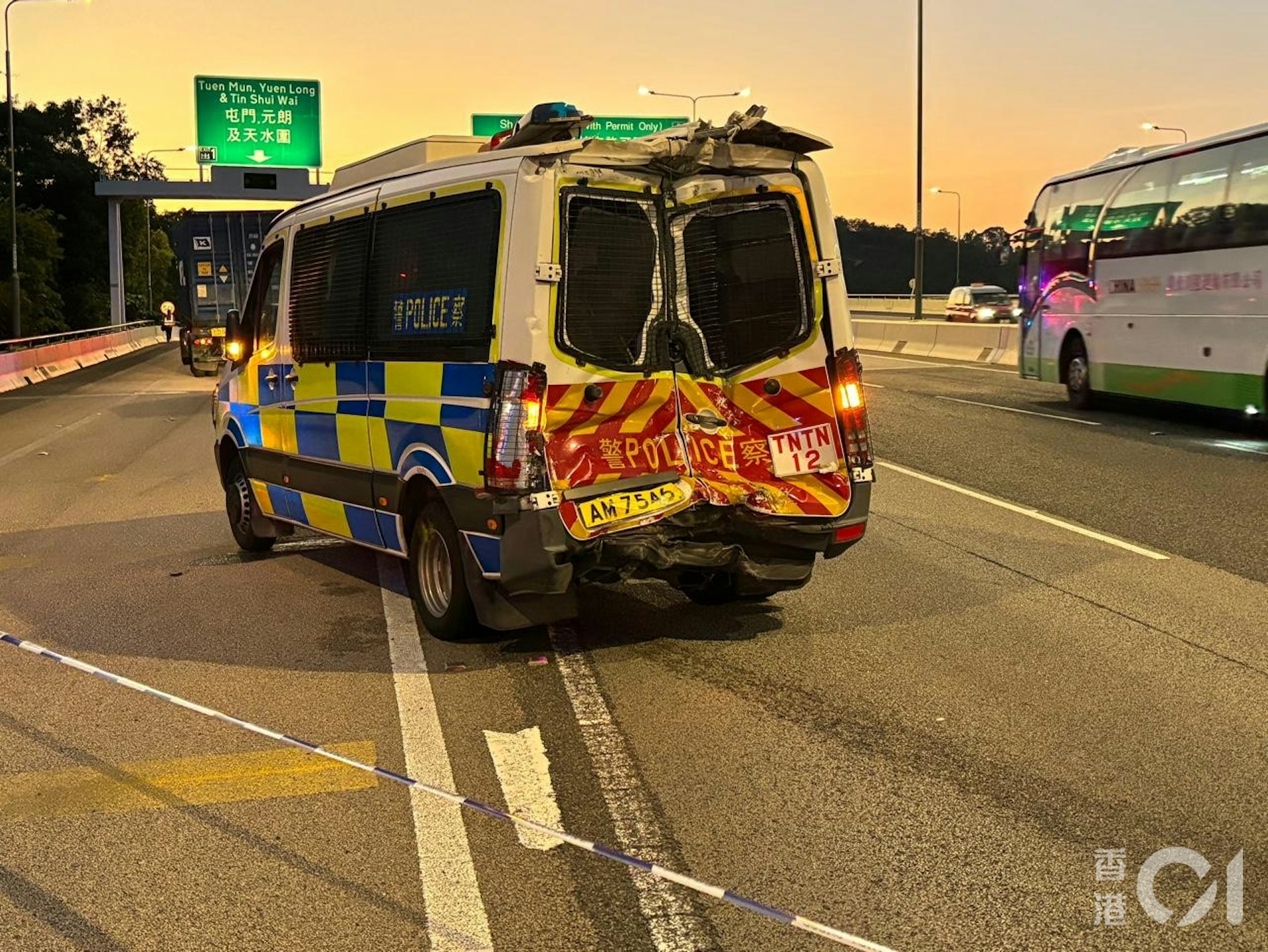 影片頻道「沿圖有理」向《香港01》提供拍攝了事發經過的車CAM影片,可見故障城巴當時停在左二線,警車停在後方約10米處,警車後放置了至少2個雪糕筒。(影片頻道「沿圖有理」提供)