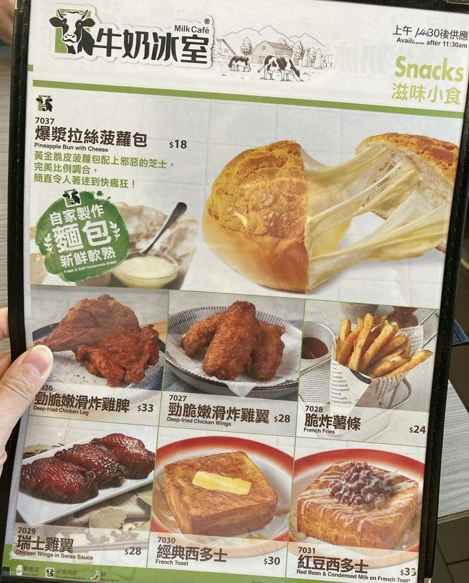 網傳照片指牛奶冰室疑售「預製芝士菠蘿包」。(「香港突發事故報料區及討論區」FB圖片)