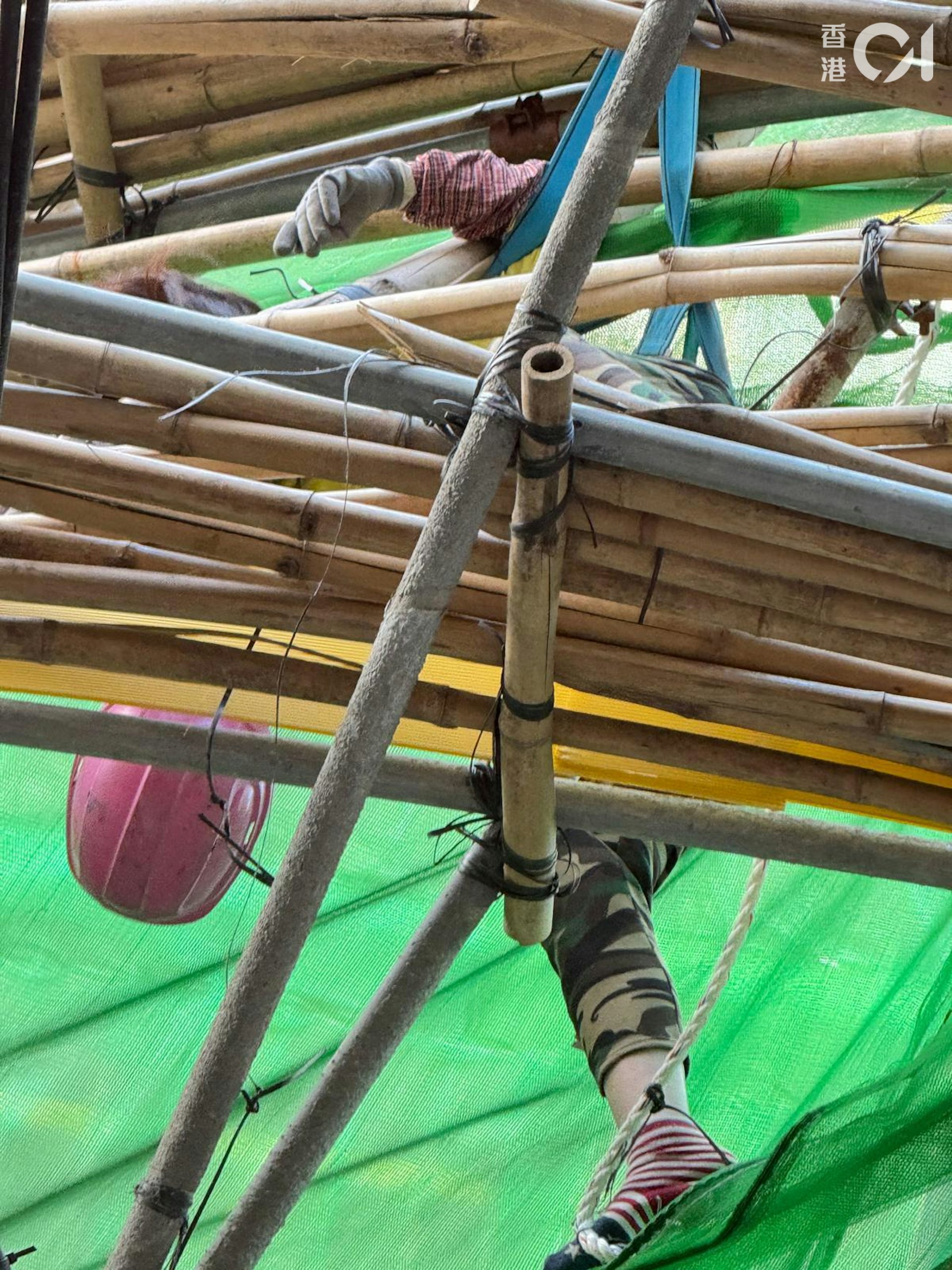% O; L' l4 K5 K. E6 DTVBNOW 含有熱門話題,最新最快電視,軟體,遊戲,電影,動漫及日常生活及興趣交流等資訊。意外後,一名有繫安全繩的女工人被夾於多條棚竹之間,原本所戴粉紅色頭盔亦甩脫。(讀者提供圖片). Q9 X9 f# {! _) x" G, M4 ?8 v1 I