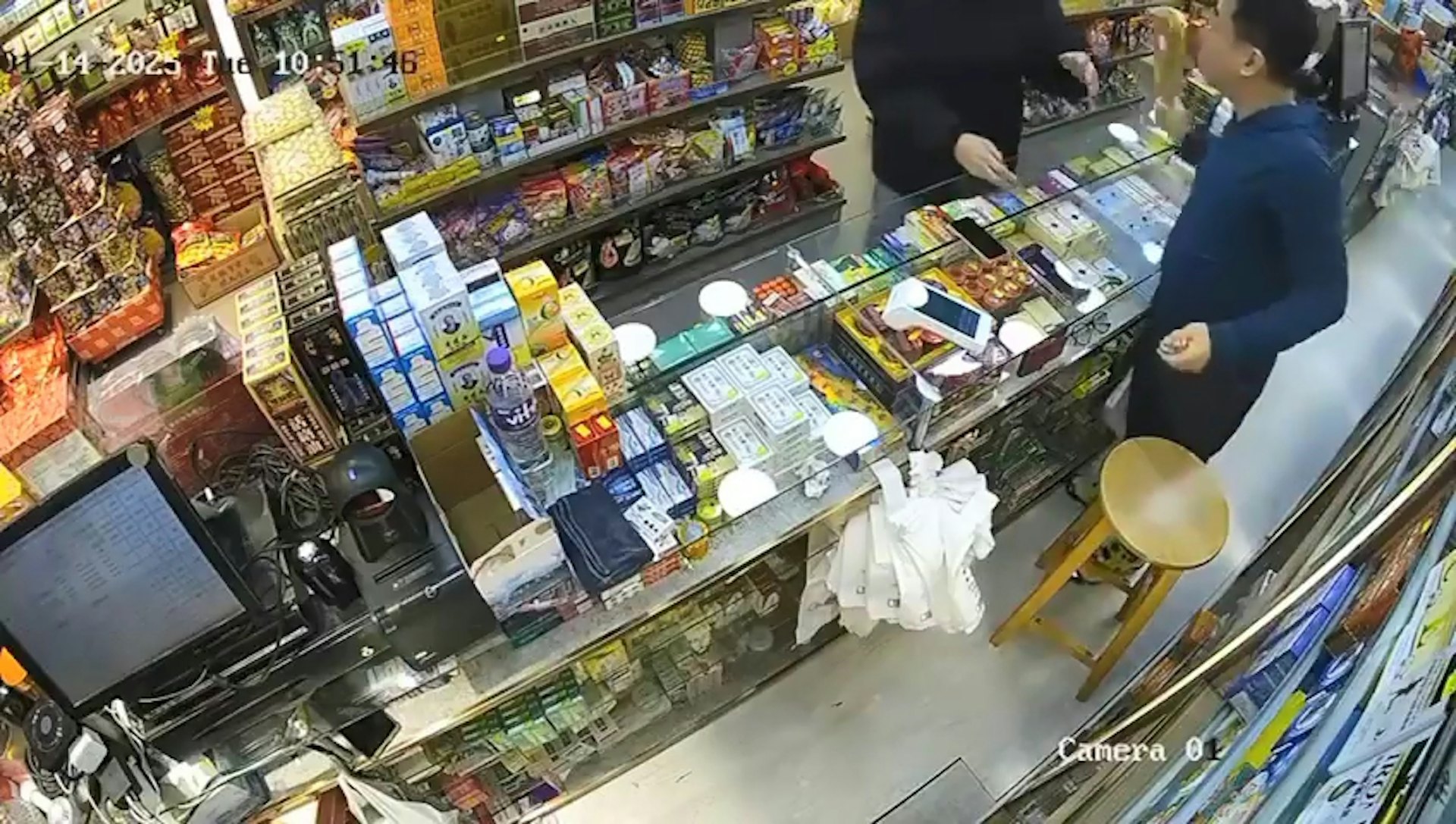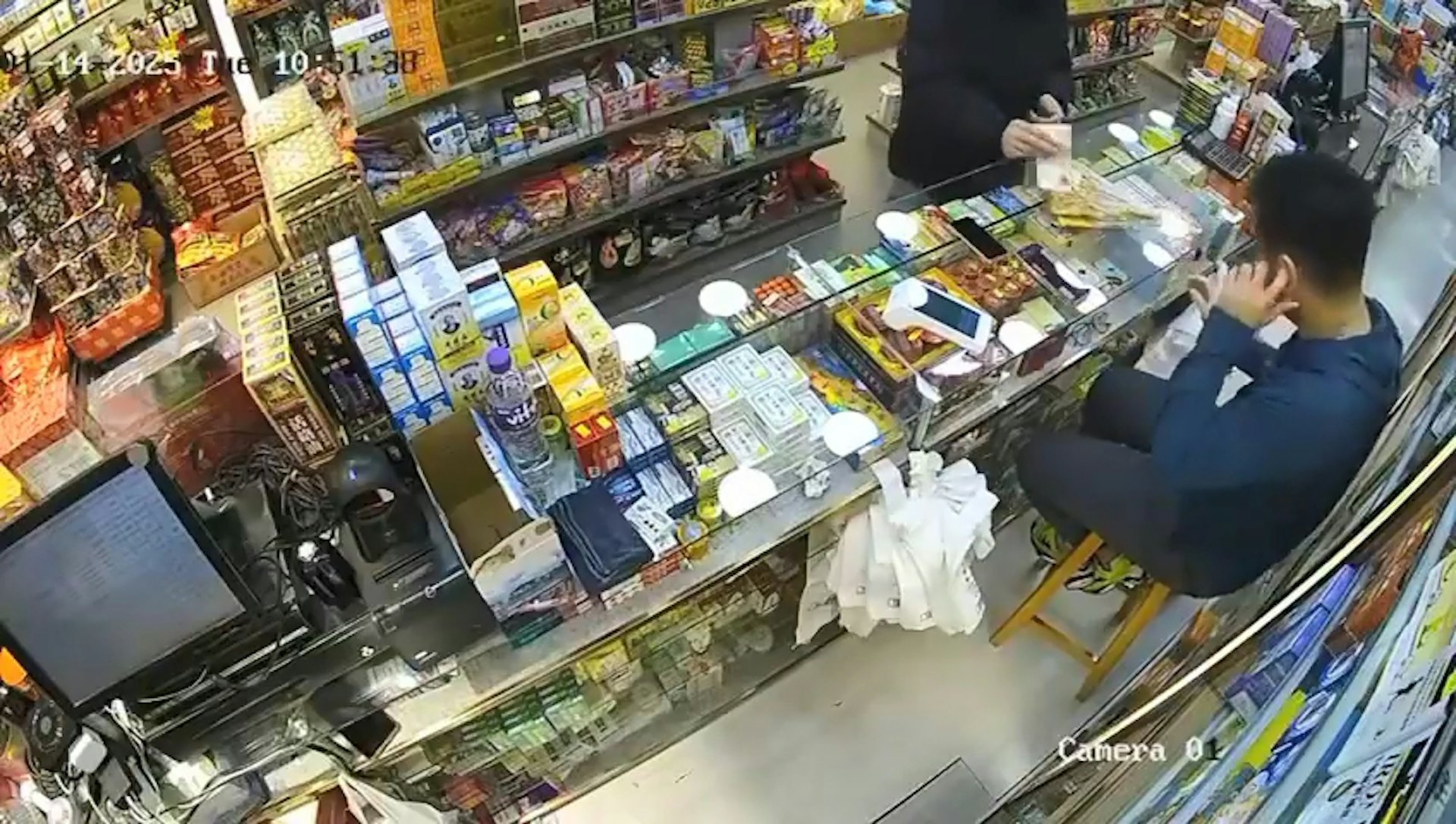 僅僅約5秒「人肉驗鈔」後,店員已察覺鈔票有異,隨即折返原位,拿起該名「顧客」欲購買的沙嗲魚串包,爆粗兼作勢打向黑衣男,連斥對方:「係咪玩嘢呀?」黑衣男冷靜回道:「(鈔票)我屋企人畀我㗎喎!呢張有問題咩?」店員再看鈔票後,拿着沙嗲魚串包拍向黑衣男頭部,再爆粗怒罵對方。