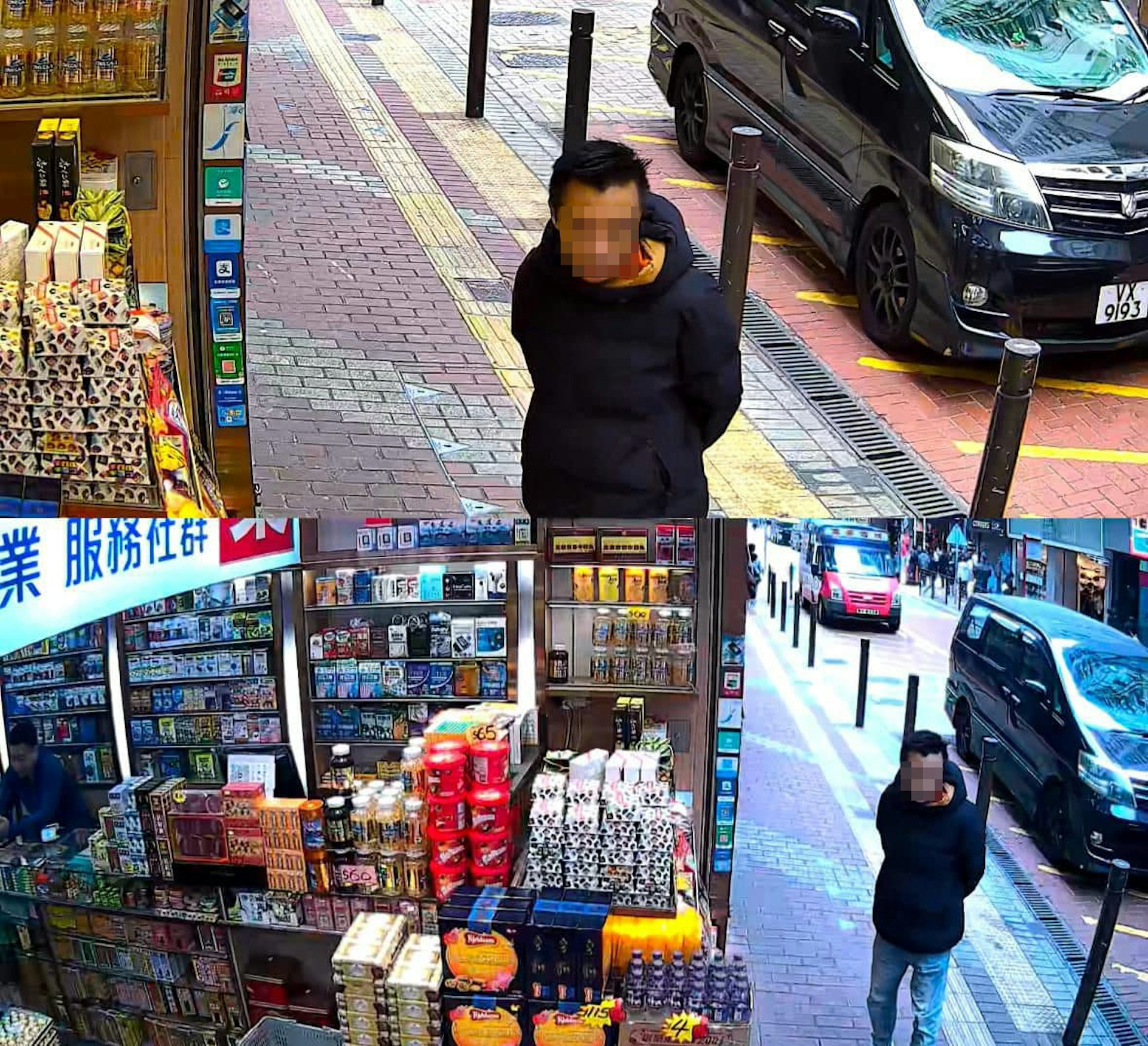 / _' q. Z% n2 F9 |7 y1 x: k' h! P* Y公仔箱論壇涉事黑衣男在旺角一間藥房企圖用偽鈔買沙嗲魚串包,被店員揭發趕走。(網上圖片)