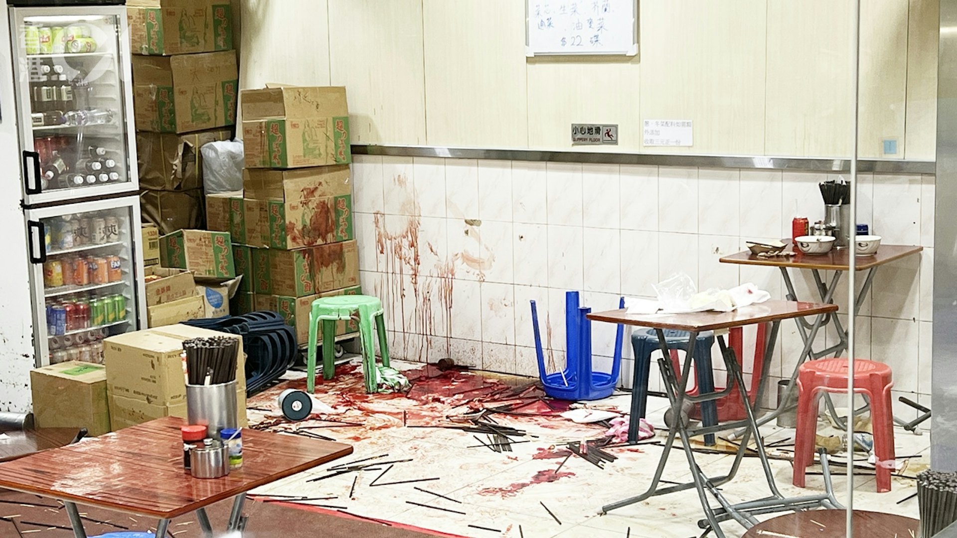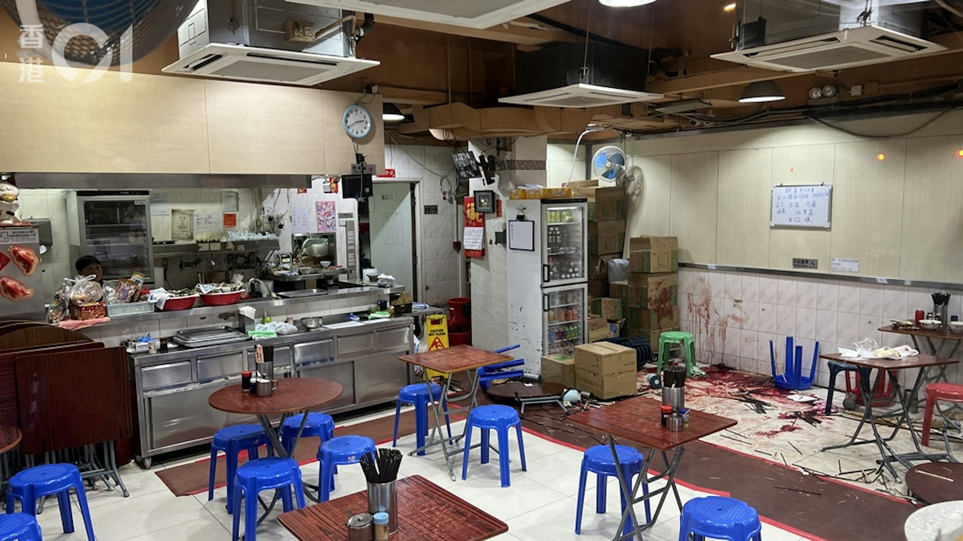 店內涉事位置鮮血淋漓。(李家傑攝)os.tvboxnow.com$ m5 T; g" G2 X$ Y# I2 {8 I! u