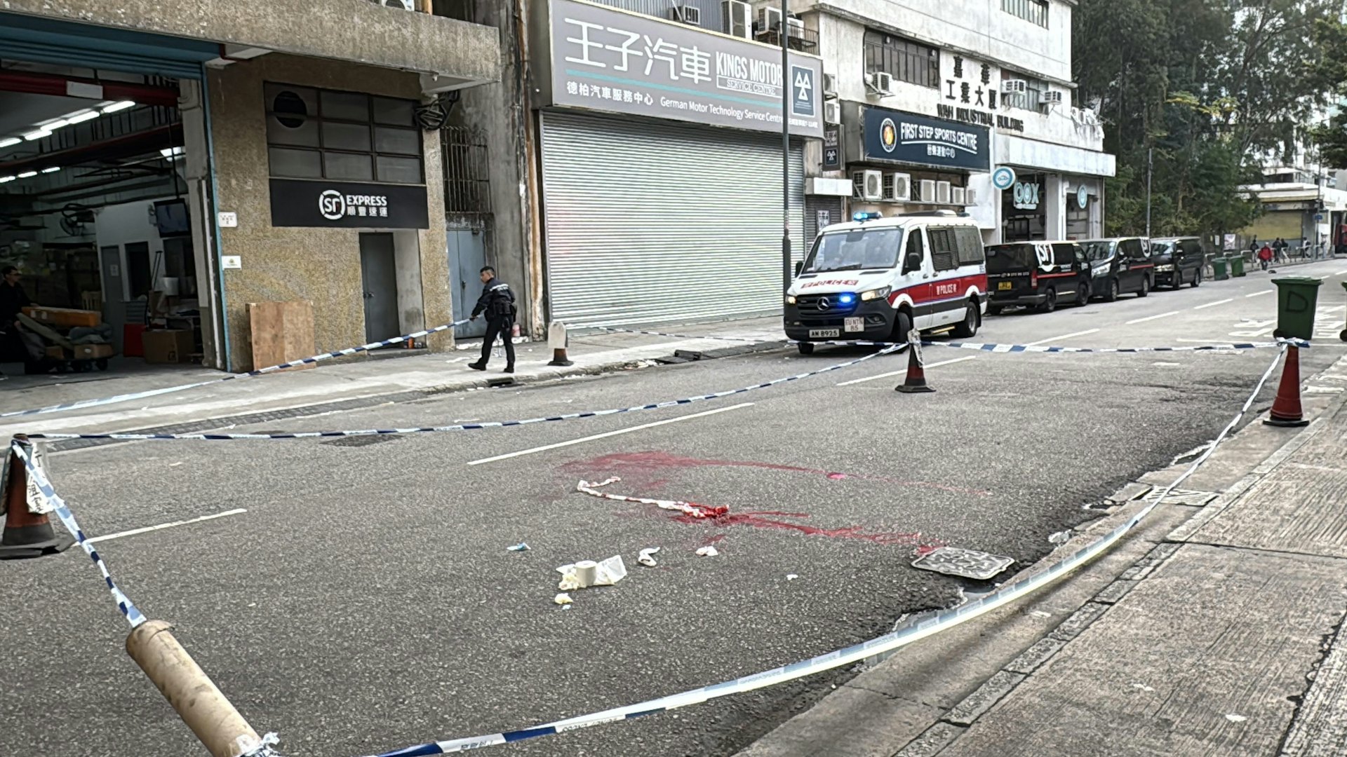 - c( Z6 W! H4 O% u警員封鎖現場調查,地面遺下血跡。tvb now,tvbnow,bttvb" U t4 R6 R3 O3 N7 L