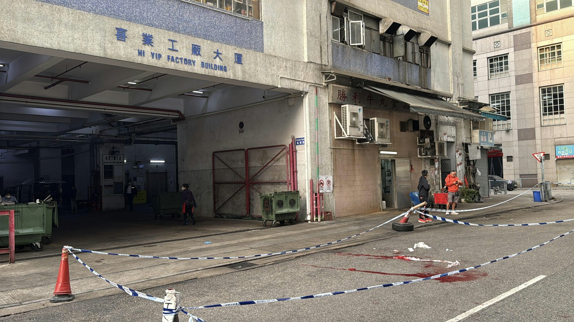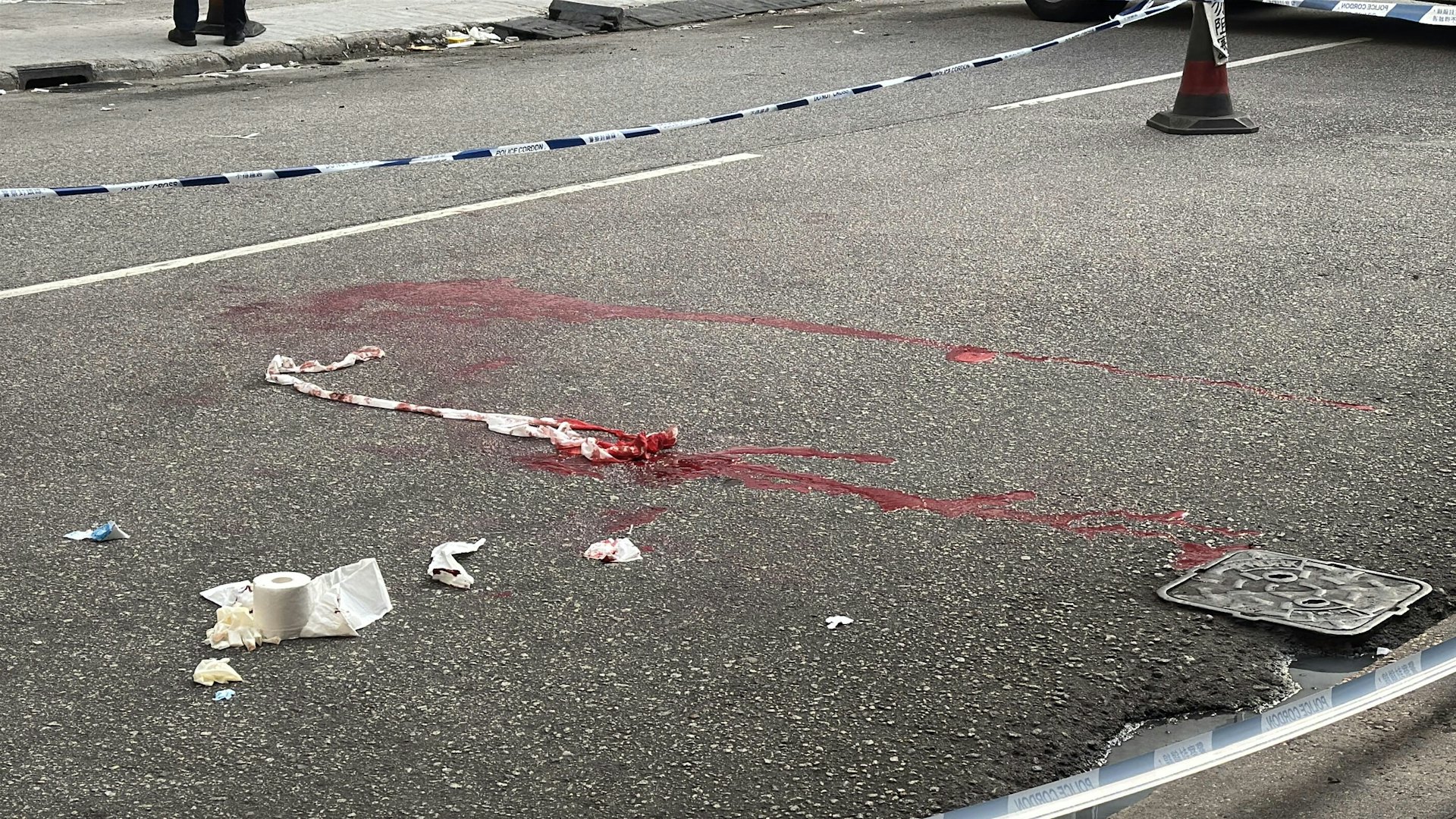 : z2 v0 p, G W1 T( C現場遺下大灘血迹。(蔡正邦攝)8 b. G# i" y9 t, ^; g8 e4 p, D( b5 `