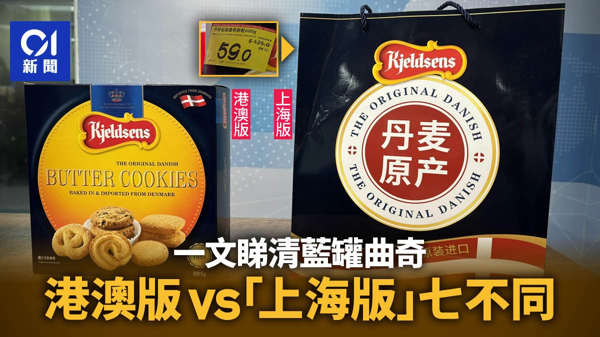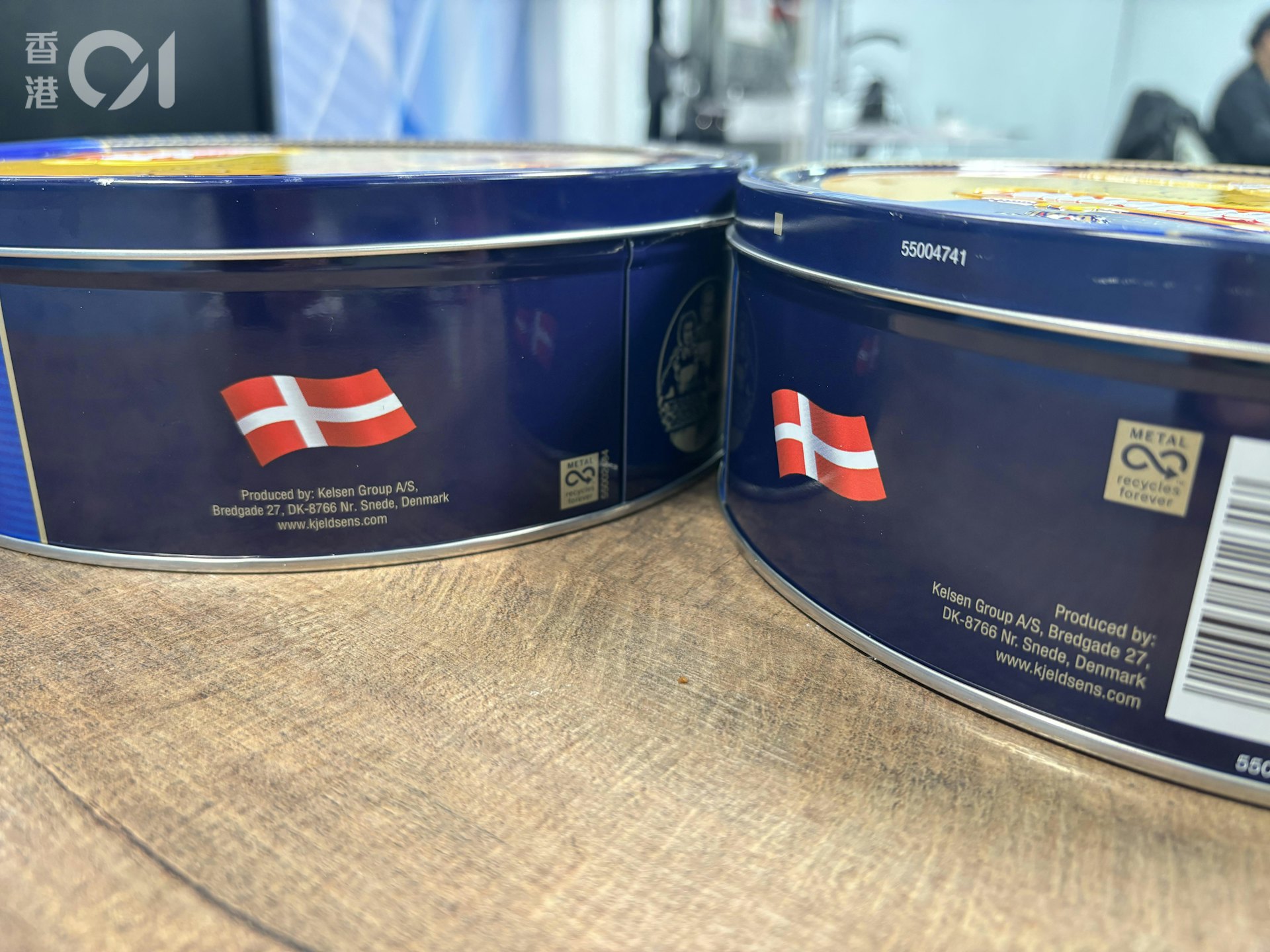 ' m1 k e9 ^" bos.tvboxnow.com兩者的鐵罐上的文字、圖片及圖案相同,包括丹麥皇室御用標誌、丹麥國旗等。唯一一處設計不一,是鐵罐側的文字排版。疑似上海版的丹麥地址位於國旗圖案下,港澳版則為右下方,差別細微。os.tvboxnow.com% x# w' e* r+ i9 |