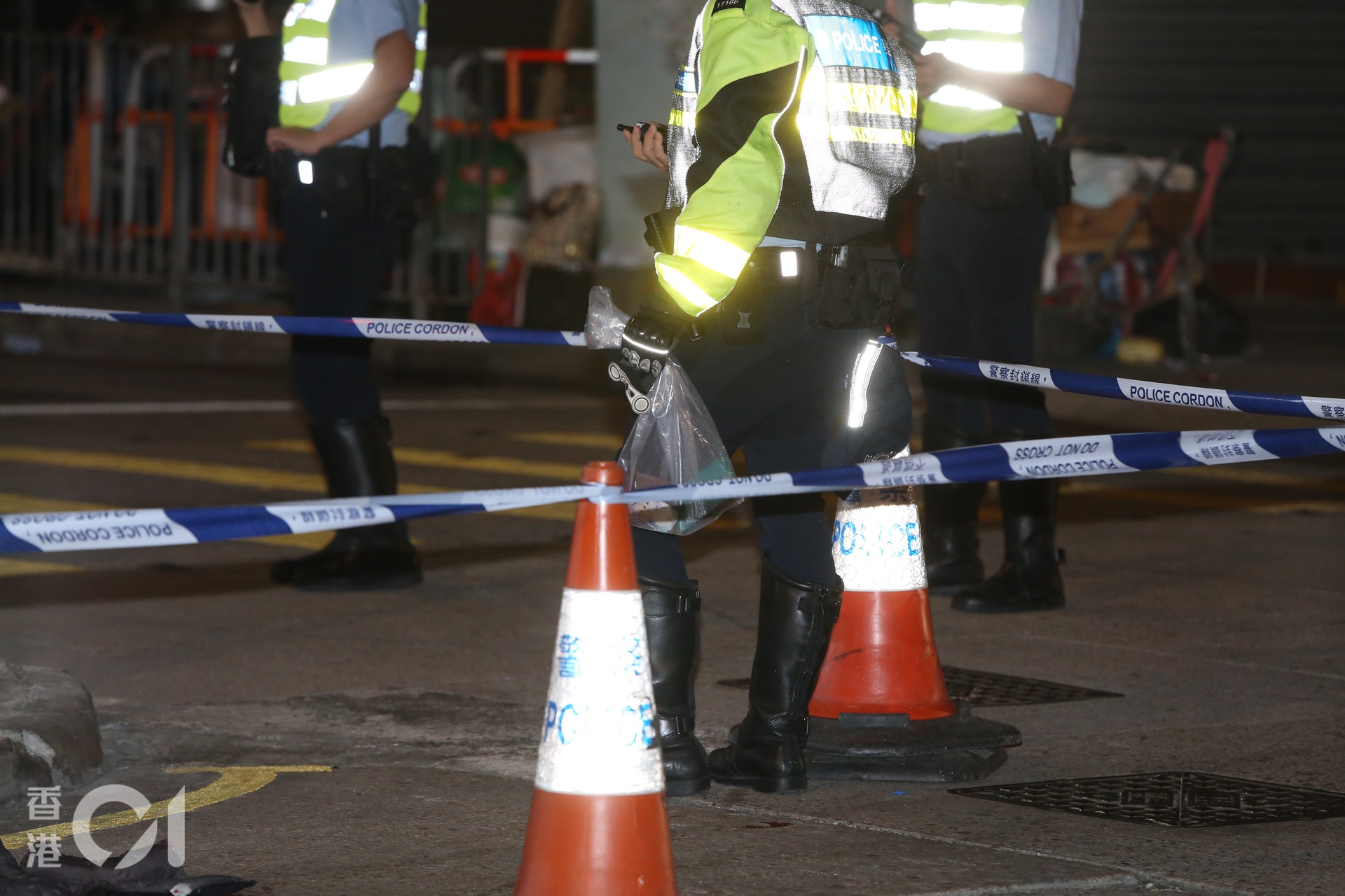 7 b( j4 B/ O5 \1 Z警方檢走死者銀包、手機及現金。(陳浩然攝)