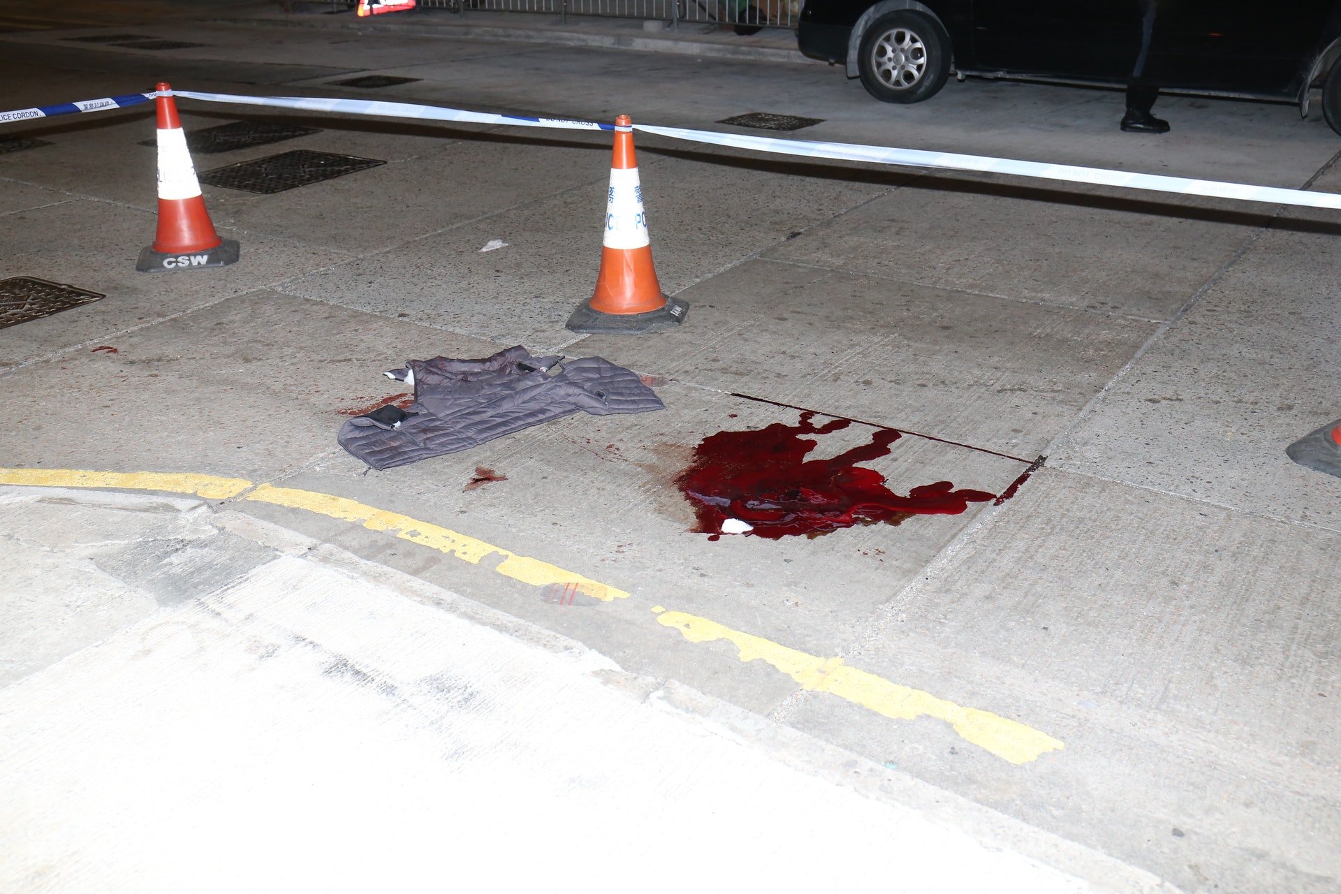 # |7 ^ \ }2 I7 V/ kos.tvboxnow.com意外現場遺下一大灘血跡及一件黑色羽絨外套,警方於現場附近店舖翻查CCTV。 |