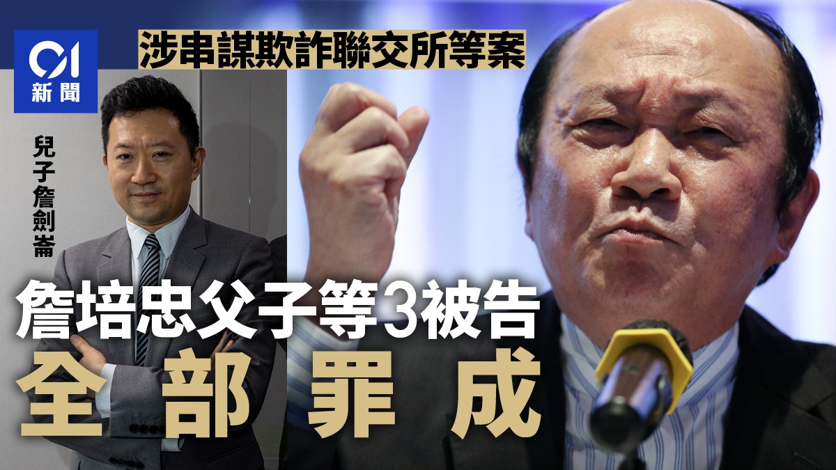 前立法會議員詹培忠與兒子詹劍崙等人,涉在配售可換股票據以增加某上市公司股本時,隱瞞秘密「買殼」協議,被廉政公署控告串謀欺詐聯交所、該上市公司董事會和股東,並疑清洗4,200萬黑錢。詹父子等3人否認控罪,案件今(9日)在區域法院裁決,法官練錦鴻裁定詹培忠父子及涉洗黑錢的女被告,全部罪成,法官取消詹培忠父子等3人的擔保,須還柙至明年1月8日作求情及判刑。
