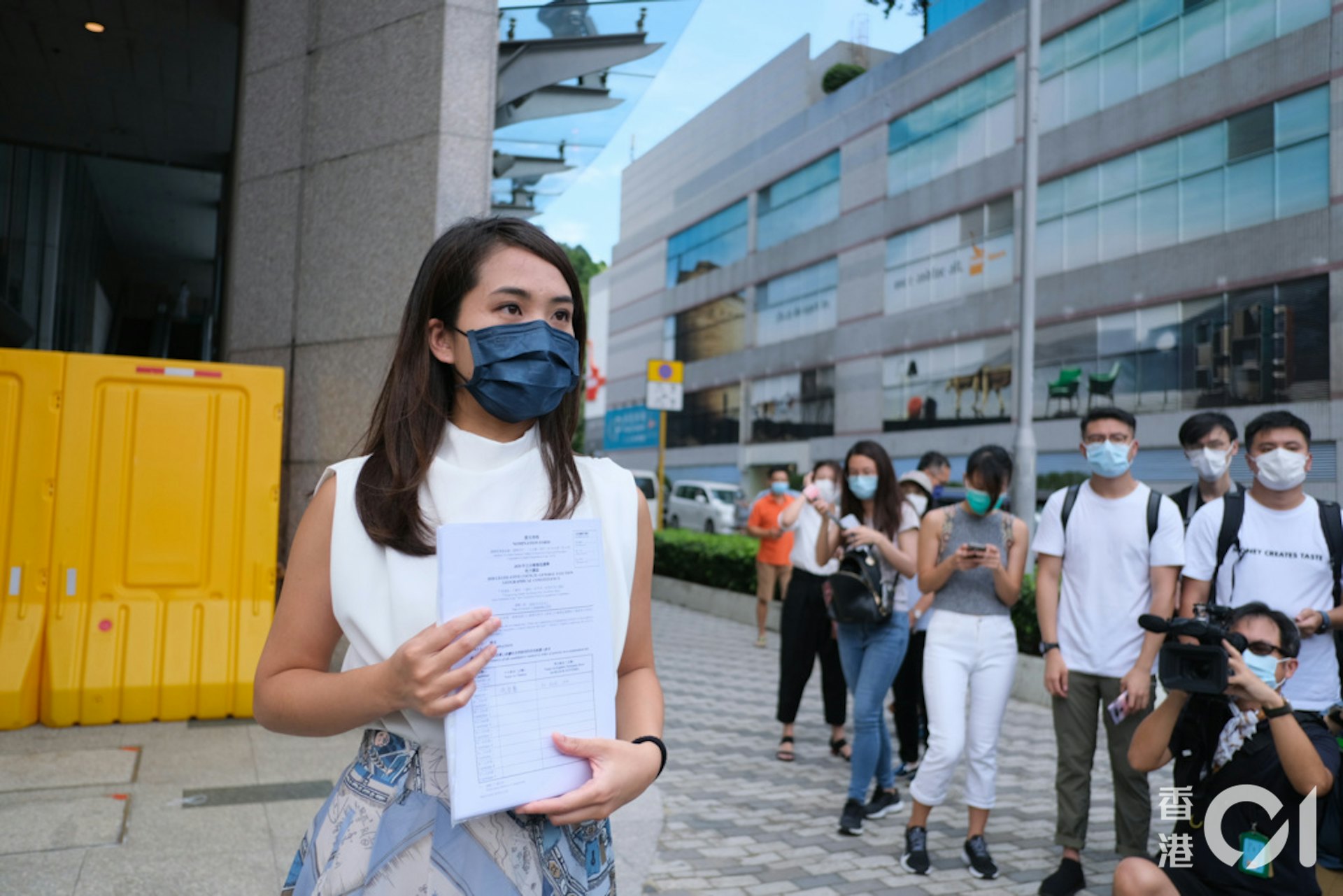 : I! { F1 J& Z+ D2020年7月,於民主派新界東初選出線的何桂藍,報名參選立法會選舉。(資料圖片/盧翊銘攝)
